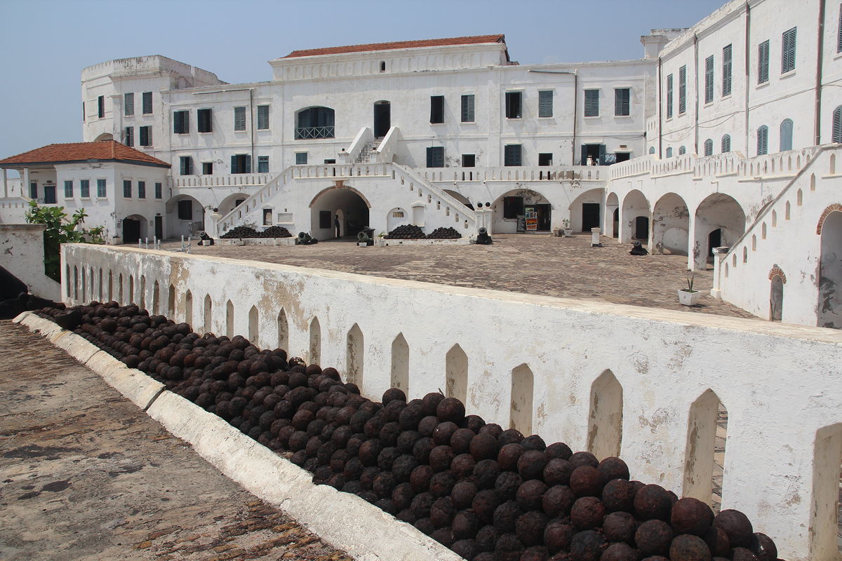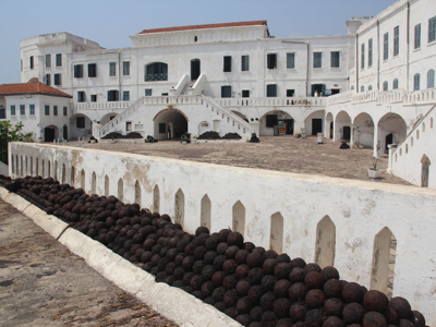 Our destination was Cape Coast Castle, one of the largest of the thirty or so slave ‘castles’ on the Ghanaian coastline. The original castle was built by Sweden, taken over by the Danes, who subsequently lost it to the Dutch before the British finally got it in 1662. It was entirely re-built by the British in 1760 after a savage French bombardment had failed to take the castle in 1757.