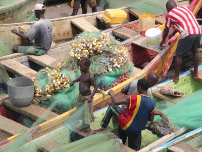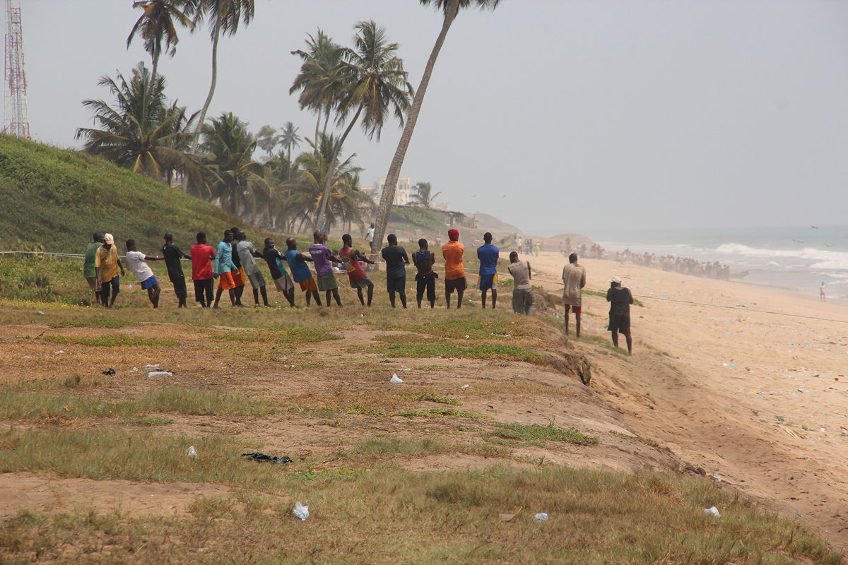 Cape Coast does have some other forts, notably Fort William and Fort Victoria, but both are currently closed to the public. Therefore, we were happy to return our hotel – hot, sweaty, thirsty, tired from lots of walking and climbing – with just one brief stop on the way to watch a team of Fante fishermen pulling in their fish net.