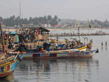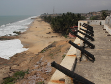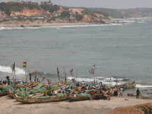 As was the case at Elmina, one of the most poignant moments came when we were shown out through the Door of No Return. Rather than being met by armed soldiers and a sailing ship to the West Indies, however, we enjoyed an overview of one of the most colourful and active fishing beaches I think I have ever seen. Like Elmina, it was a raging riot of colour and activity, with fish selling going on beside repairing of nets, unloading of boats, fishing with nets in the breaking waves – so much to take in.