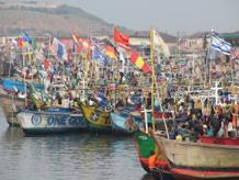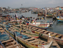 St George’s Castle is impressively located on a rocky headland that protrudes into the rough seas of the Gulf of Guinea. Getting to the Castle was half the fun, as it involved a walk along the narrow streets of Elmina, which is now primarily a large fishing settlement. The calm (in terms of wave movement) harbour where the fishing boats are kept was a riot of colour and human activity – perhaps like Mopti on steroids.