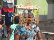 After crossing a metal bridge that joins the harbour to the sea (and stopping for lots of photo taking on the way), we walked up to the castle, and entered it via a drawbridge that crossed the old moat. After going inside, we were given 20 minutes to explore by ourselves, which we did, looking around the main courtyard, beginning with the old Portuguese church in the middle that was later converted by the Dutch into an auction room for slaves. We then climbed some stairs and walked around the upper defence walls, which gave some spectacular views looking down on the fishing activity and the boat harbour below.
