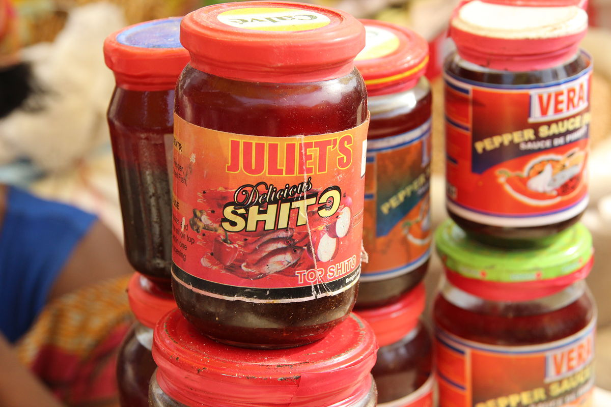 Kumasi’s Kejitia Market is the largest market in West Africa.  From a distance it resembles a run-down, rambling ensemble of rusty tin shacks, but once inside it is a labyrinth of claustrophobically narrow lanes, filled with jostling people in bright clothes carrying cargo on their heads, and thousands of stall holders engaged in lively commerce.  Traders apparently come from all over Ghana, and some even come from as far away as Burkina Faso – it truly is a market that sells everything that can be obtained in West Africa.  The aromas in the various sections ranged from fish to soap to spices to pungent fruits and vegetables to open drains, and the sounds ranged from excited yelling to attract customers, amplified music and excited talking, the bumps of collisions, and the cries of “No!” whenever Andrew or I dared to raise a camera.