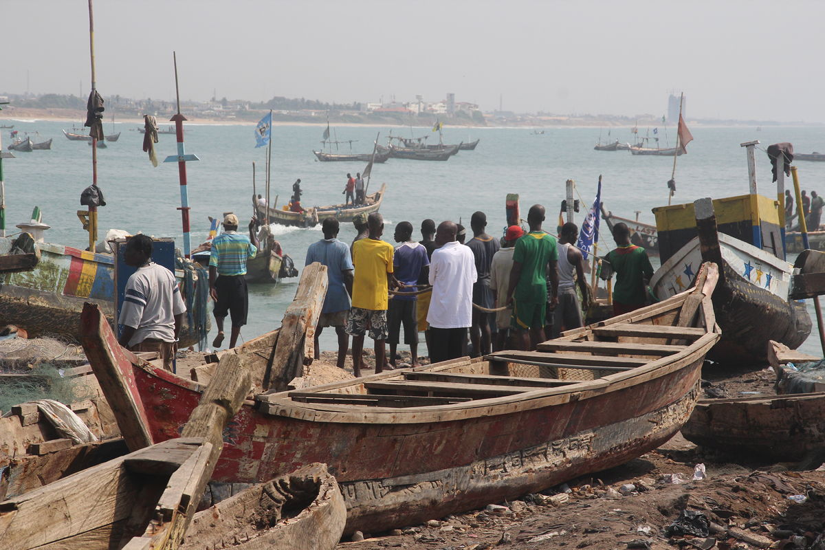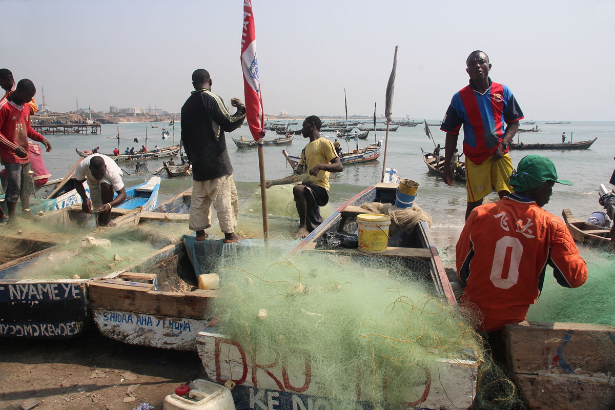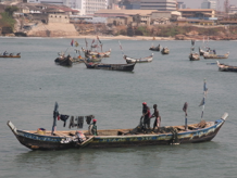 The fishing village was a bewildering array of bustling activity.  We began by visiting a small school that had been built for the fishing families’ children, and then walked out along a breakwater that was also the roof of the tunnel through which the British used to move the slaves from Fort James to the shoreline before boarding the sailing vessels.  As well as a thoroughfare, the breakwater today also serves as the main latrine area for the fishing village.