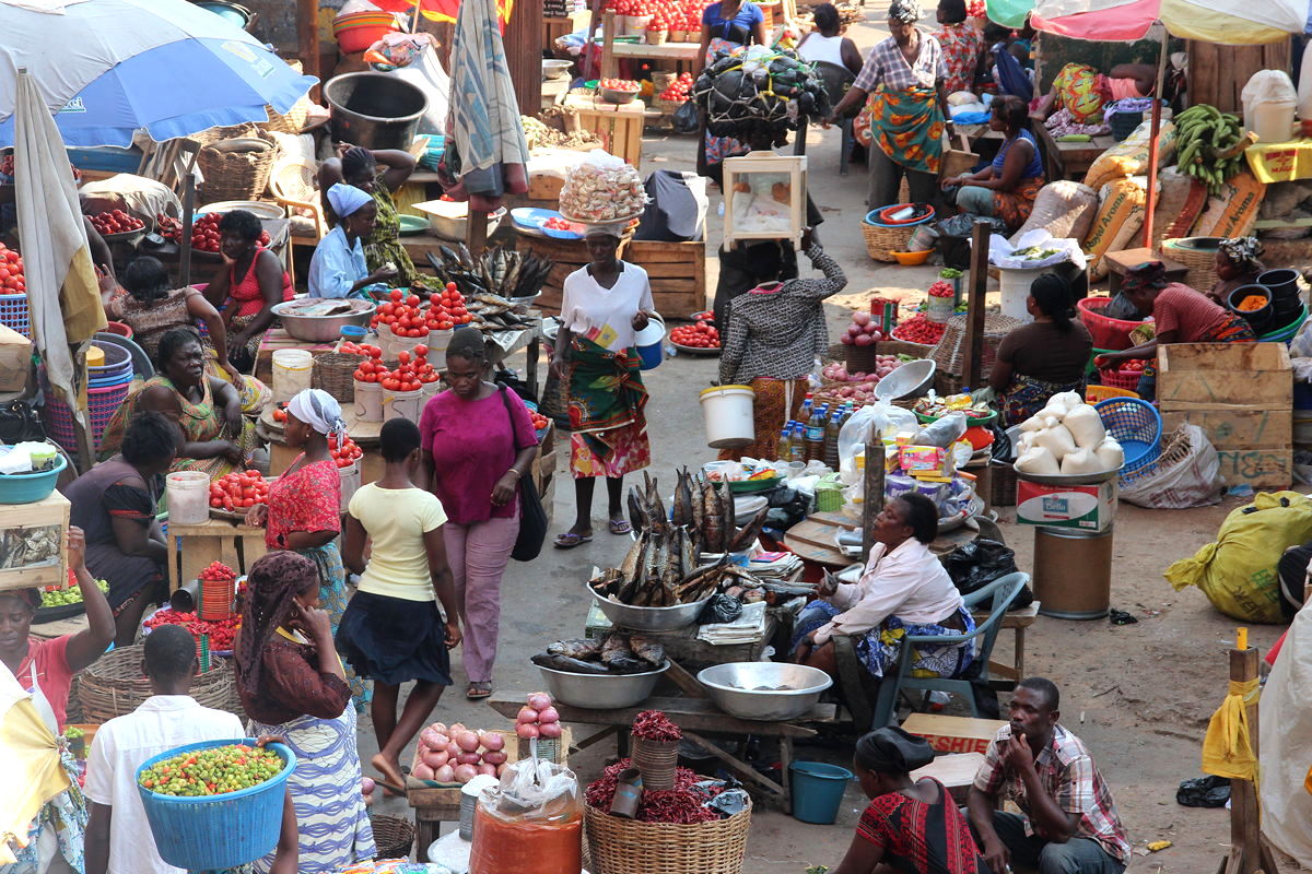 Then, in the late afternoon, we went out to make one final visit to explore Accra.  Our destination was the Makola Market, a vast complex of stalls selling everything you might expect a large African market to sell.  The description in the Lonely Planet Guide was mildly off-putting and yet seductive at the same time: “For new arrivals to Africa, it can be an intense experience, but it’s a fun – though perhaps a little masochistic – Ghanaian initiation rite”.