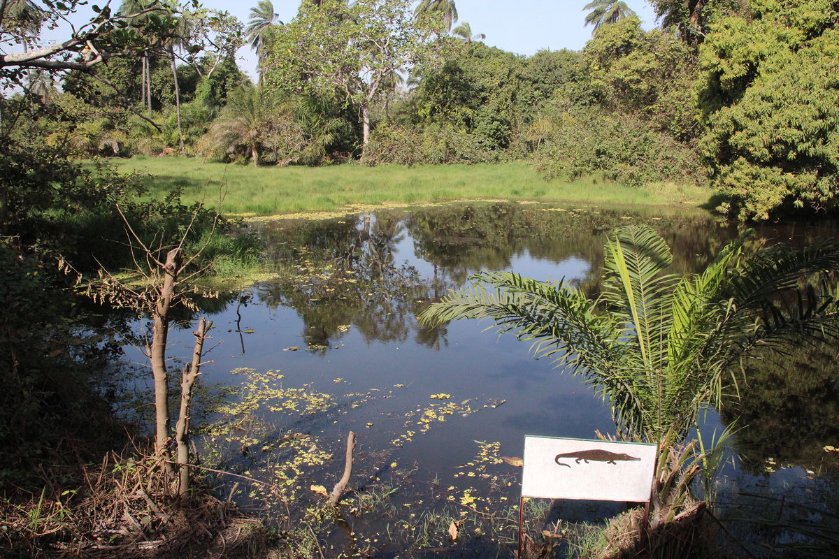 Our third stop took considerably longer than the first two.  Just a kilometre or so south from the cattle market is the entrance to Abuko Nature Reserve.  This small reserve is only a little larger than a square kilometre, but it contains one of Gambia’s last surviving tropical riverine forests with abundant bird life, monkeys and antelopes (all of which I was able to see during my walk this morning).  There are also crocodiles, but although I saw their pond and their picture, the crocs themselves eluded me.  To my relief, I also managed to avoid meeting any of the snakes (green mamba, puff adders, rock pythons, forest cobras and spitting cobras, among others).