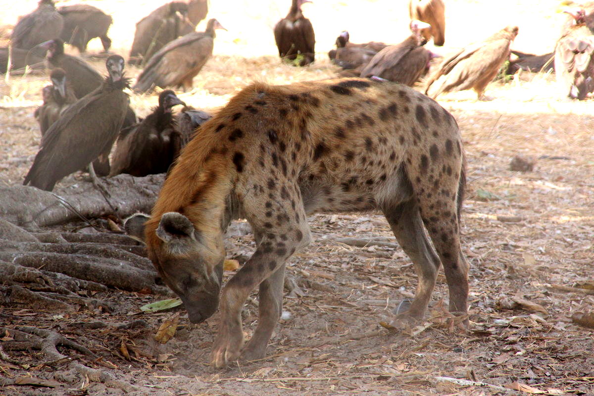 At the mid-point of the circular walk, a small animal orphanage has been established.  This was somewhat disappointing, as it comprised a collection of vultures, hyenas, baboons and a sole tortoise, all in double wire cages that made viewing as well as photography quite difficult.  More interesting from an ecosystems perspective were the strangler figs, several examples of which could be seen on the walk back to the park entrance.  Overall, walking through the nature reserve was a great experience, being a fairly easy (i.e. level) walk in cool shade on a sandy track with many opportunities to spot wildlife and admire the magnificent gallery forest.