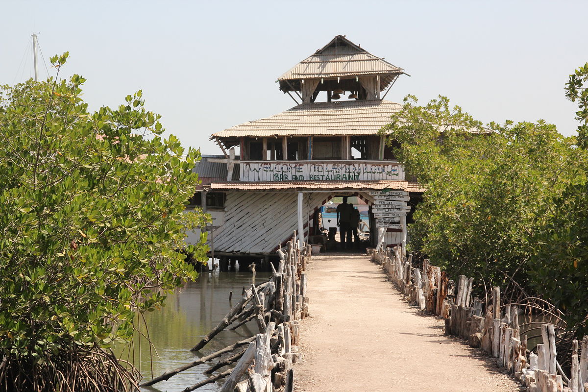 Returning to the river bank, we saw a quirky structure that looked like a little boy’s over-grown tree house.  It was a three-storey wooden pile structure built at various odd angles over the river, known as Lamin Lodge.  Operated by a German gentleman, Lamin (no relation) recommended it as a great place to eat or have a cool drink.  I agreed to the latter and enjoyed a cold Coke that was indeed refreshing.
