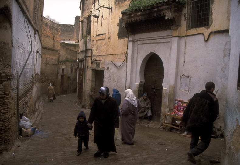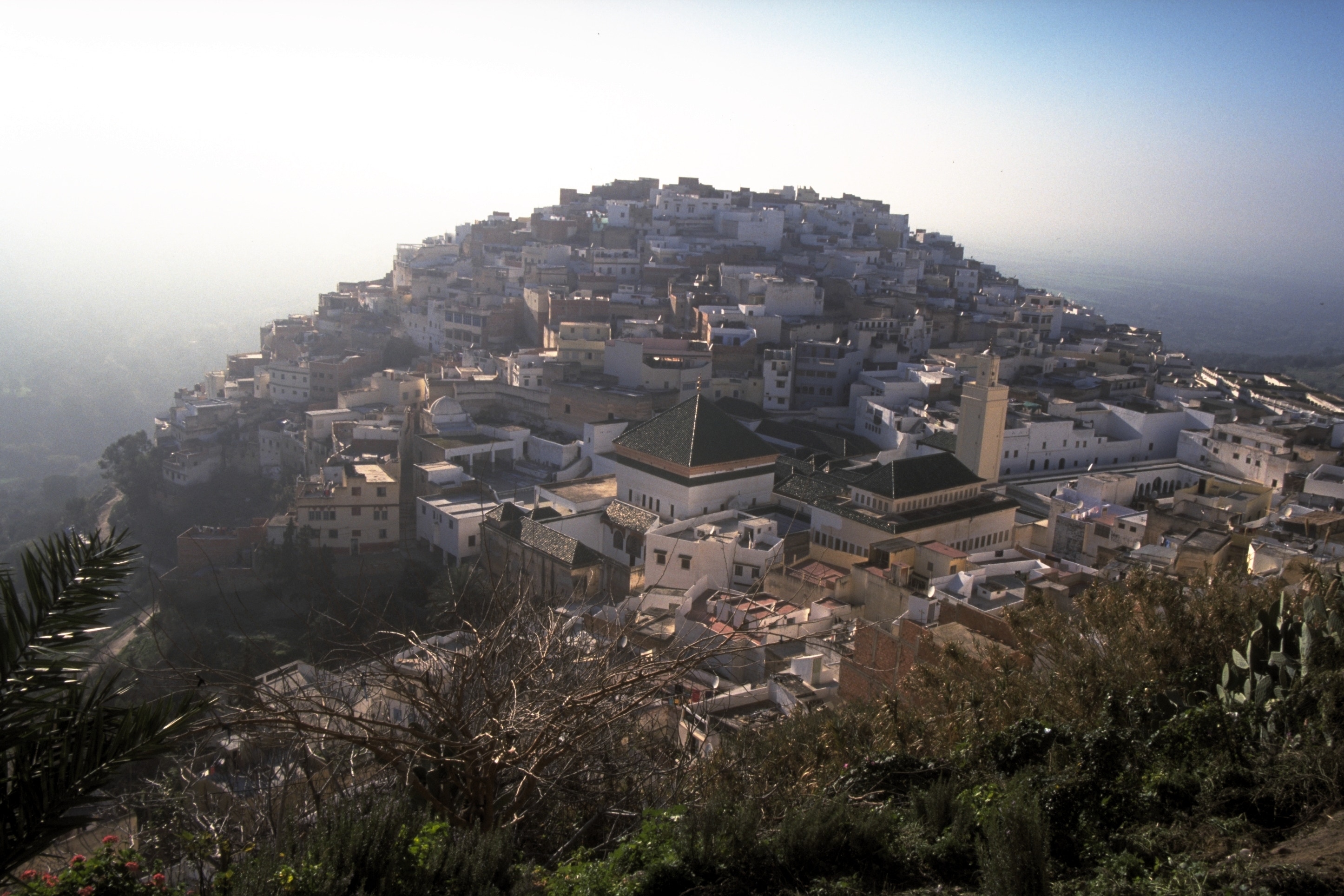 Andrew’s and my African adventure began when we touched down in foggy Casablanca (in Morocco) on Tuesday 13th January after the long flight from Los Angeles, via Miami and Madrid. After a very relaxed clearance through customs and immigration we collected a rental car and began the 300 km drive north-east through Rabat (the capital of Morocco) and then east through Meknès and on to our destination, the ancient city of Fez. The road was excellent, and in fact much of it was a toll expressway, and the fog cleared as we proceeded east. Although Di’s back was not great, we didn’t need to stop too often, and our main stop was at a small hill-top town called Moulay Idriss, which is something of a centre of pilgrimage among Moroccan Muslims because of the huge mosque there – they say that five pilgrimages to Moulay Idriss is the equivalent of one haj to Mecca for Moroccans who cannot afford to make the real haj to Mecca.
