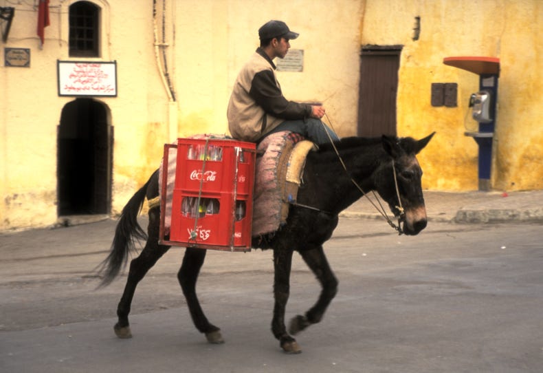 Wednesday the 14th of January: We checked out before walking around the old town. There were many interesting things to see there such as donkeys having right of way in the very narrow street, (they take up the whole path) and where they make leather, which is a huge area full of these circular bathtubs full of ammonia and donkey urine. What seems weird to me is that people actually wear leather jackets that have been made in donkey urine. Another very odd thing that I saw was that although their houses are in a very poor state and they can’t afford much, every single house there has a satellite dish. (This fact may persuade mum and dad to buy one for our house!) We also walked to the gate of a Muslim mosque. We spent some time driving around the town before driving through about 17 police checkpoints (where they try to make up an excuse so that you can pay them a bribe) to reach the reasonably close city of Meknès where we simply walked around for a short time before driving back to Casablanca where we spent a very long time trying to find mum’s hotel where she would stay at for one night. Dad and I then drove to the airport. By the time we’d arrived there, returned the rental car, checked in, gone through security and gone through immigration and sat down we had about half an hour to sit and wait for our flight!