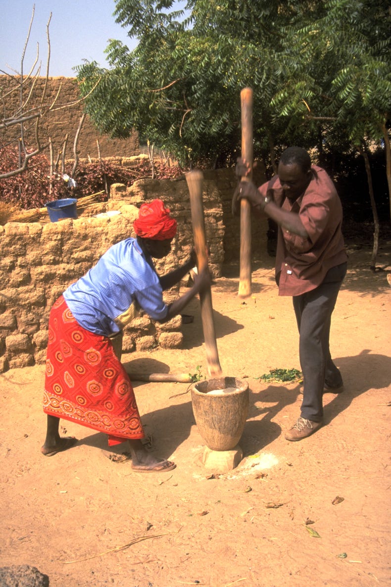 Andrew and I think she would also have had trouble coping with the extremely strong, acrid, penetrating body odour of our seemingly 15 year-old driver – a pungent smell that, together with the overall smoky smell of the air here (a result of everyone burning wood for heating, cooking and even lighting) will remain a lingering memory of our time in Mali. We stopped in several villages, and even went into people’s houses, saw cooking, grain pounding, mud brick making, chestnut baking, house building, sorghum husking, goat herding, donkey trains, spoke with people – in short, we had a magical experience that I hope the photos will begin to convey.
