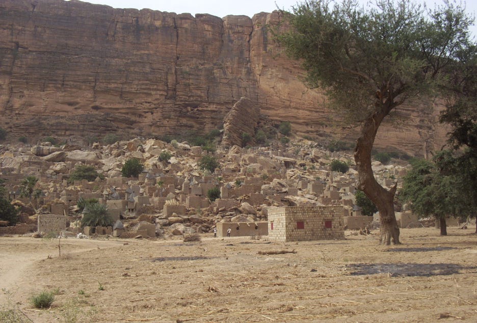 Our first stop was a cliff-top village named Bongo. This was bit of an anti-climax. The focus was a cave filled with handicrafts for sale, and the end of which was a group of children who sing (somewhat half-heartedly and certainly out of time and out of tune) to welcome visitors to the village and then demand 100 CFA francs (about 25 cents) in return.