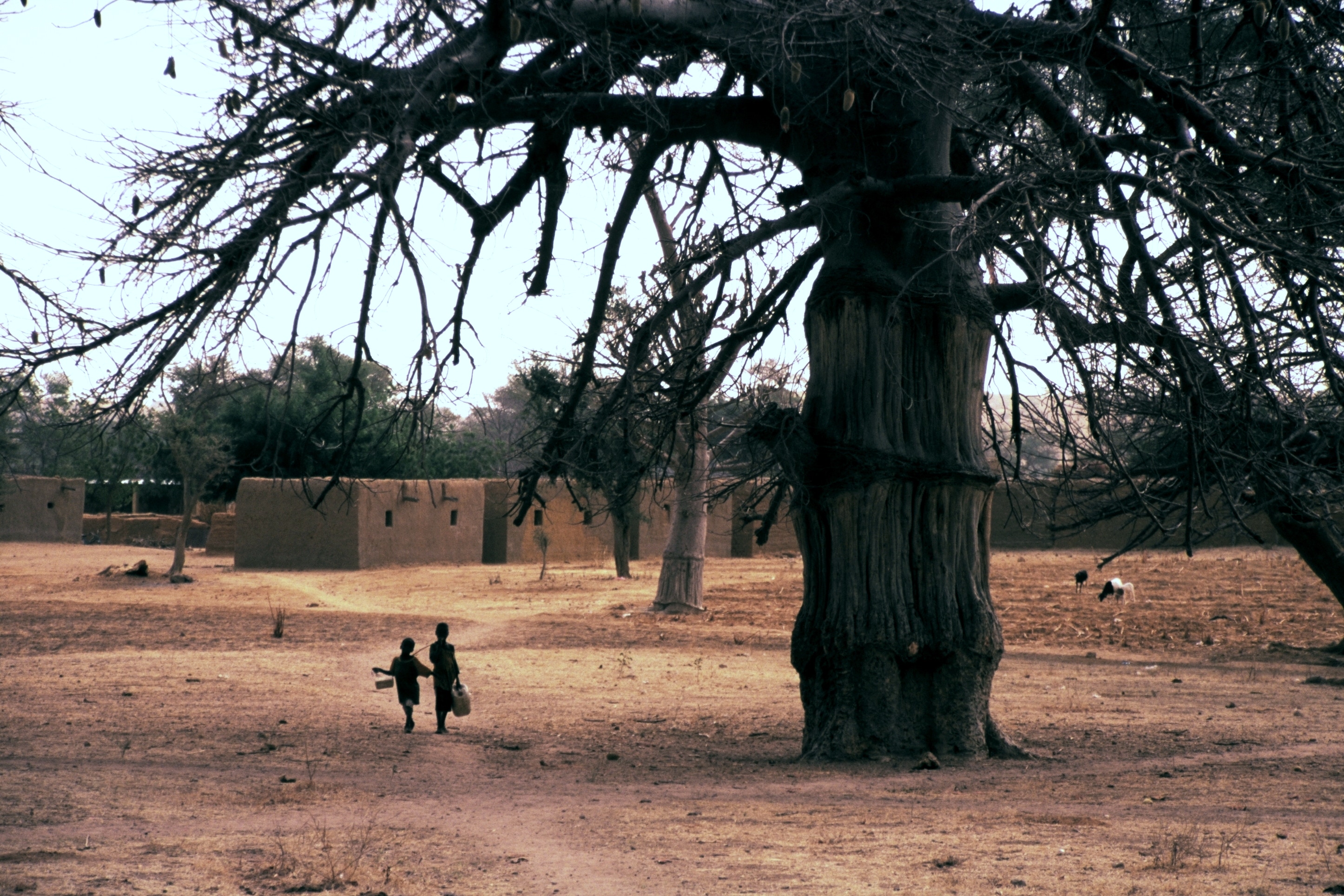 We got on quite well with the village chief, an interesting man with two wives and thirty dependents. He told us that the women in the village all wanted Andrew to stay with them, and never leave, and after the dance he gave us lunch of ‘tô’ (pronounced dough), which is a grey-green millet paste accompanied by a green sauce made from baobab leaves, eaten with the hand (the right hand only, of course, because the left hand is reserved for that ‘other’ purpose). Both Andrew and I agreed that the tô was tasty good food.