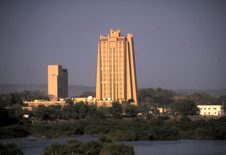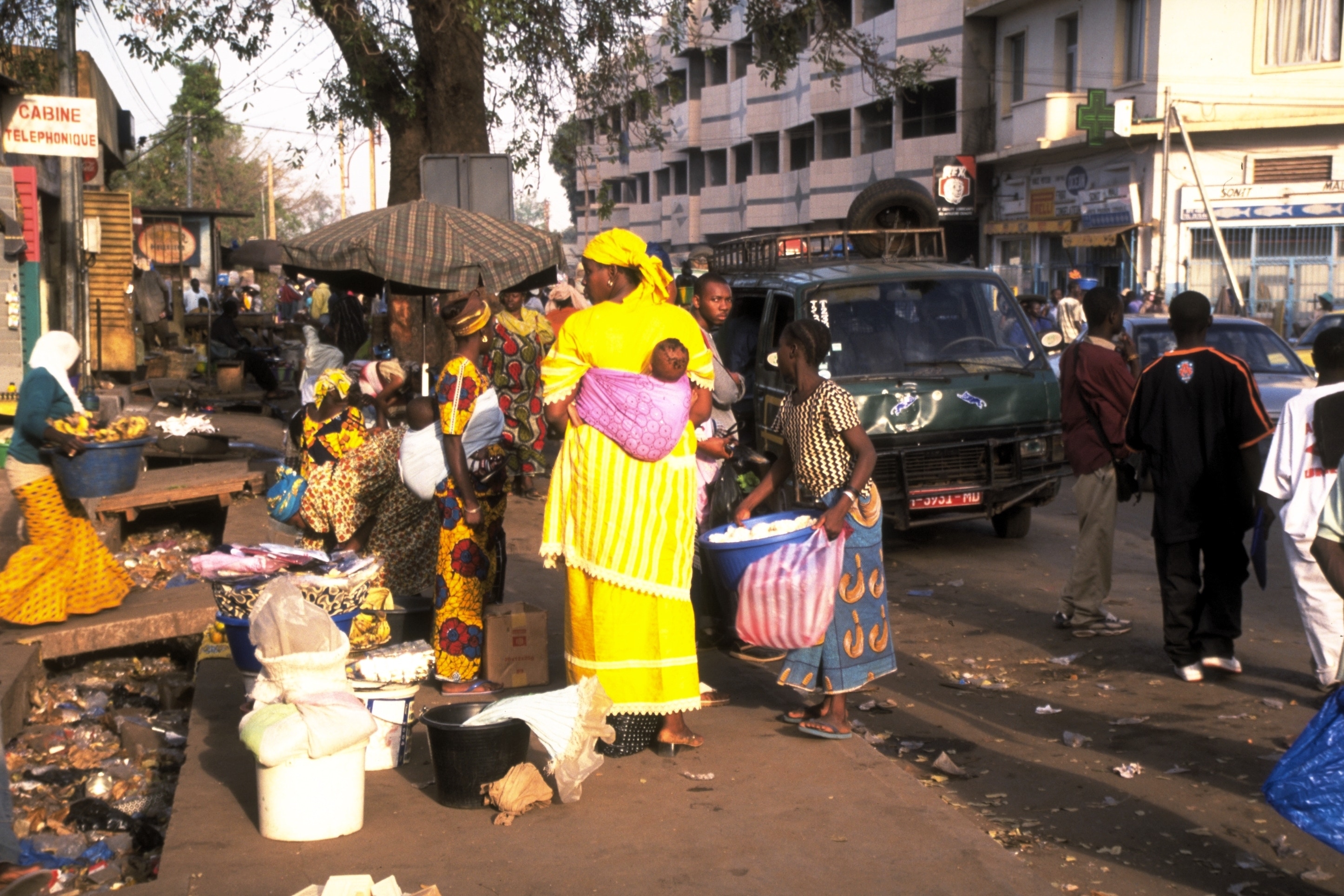 We had about an hour and a half sightseeing in Bamako – certainly a very lively place compared with Mali’s countryside. It was interesting to see the French colonial heritage remaining in many of the old buildings and the tree-lined boulevards, but superimposed on it are all the elements of a Third World city in one of the world’s poorest countries – massive air pollution from poorly tuned vehicles, narrow streets crowded with street stalls, even livestock in many places, and run-down decrepit buildings, all interspersed with a population beautifully presented in their bright, clean clothes.