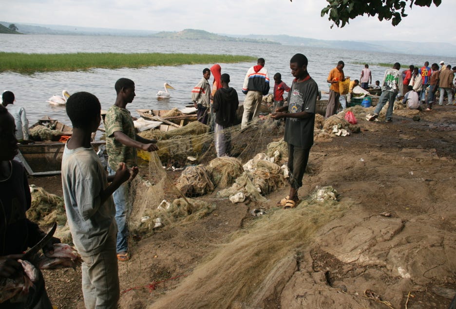 Our first stop was the side of Lake Awasa where the fishermen were sorting through their overnight catch. Hundreds of people were there, untangling nets, cleaning fish, selling produce and just hanging around - I guess we fitted into this last category, together with the many waterbirds that were also attracted to the scene. It was simultaneously scenic, active, colourful and insightful, and it provided a great start to the day.
