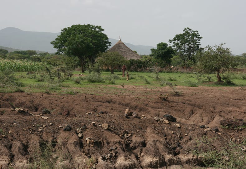 Even when we stopped for 10 minutes – seemingly in the middle of nowhere – so that the driver could talk on his mobile telephone to his brother in the US, there was plenty to see - some nearby huts, a herd of cattle being moved, some significant soil erosion, xerophytic plants beside the road, and the always fascinating passing traffic, both motor and animal propelled.