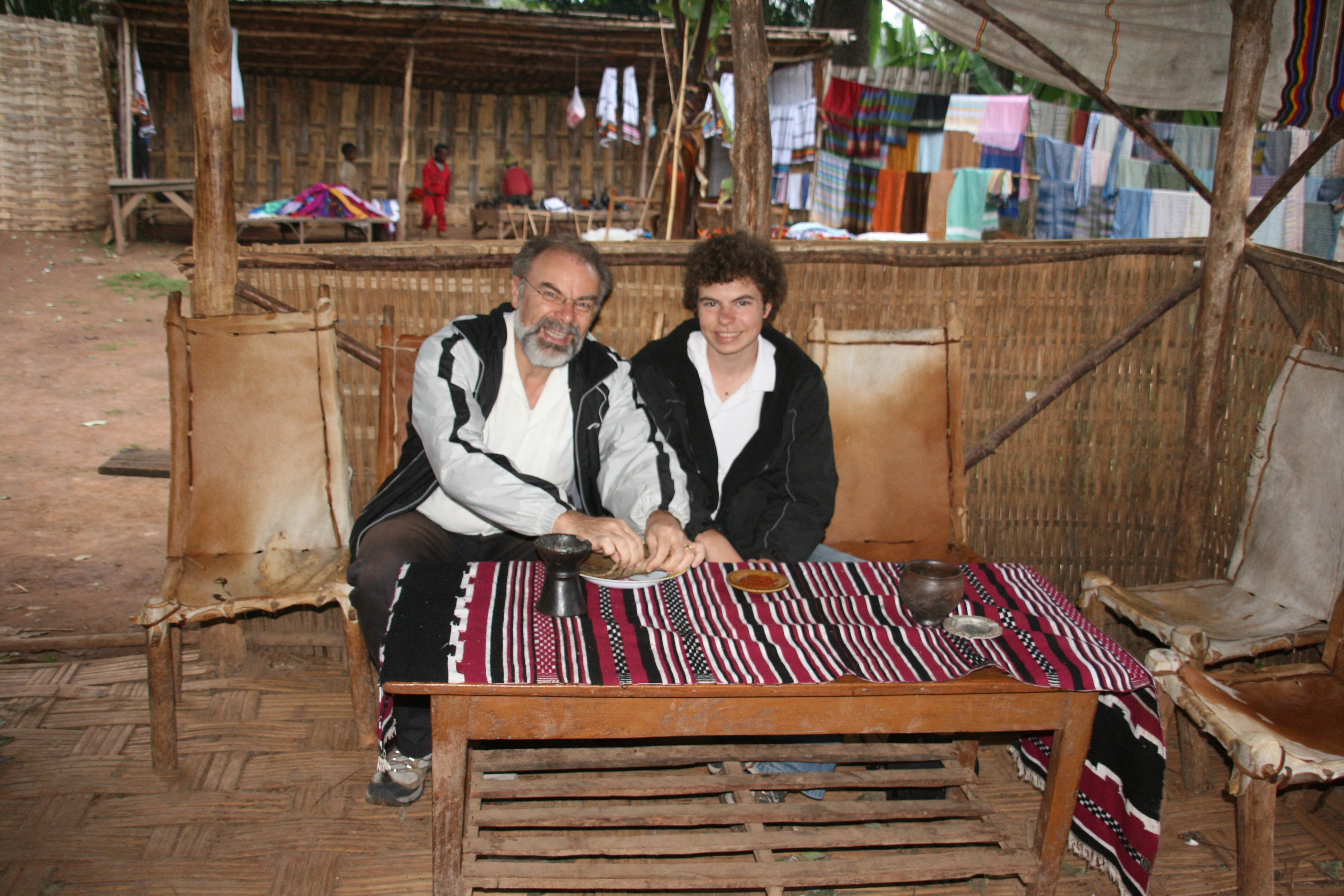 Our hotel in Arba Minch was the Bekele Molla Hotel, situated overlooking two of the Rift Valley lakes, Lake Abaya and Lake Chamo. The rooms were in semi-detached cabin style, quite large but also mosquito-infested and quite run-down. The atmosphere we encountered was not improved by the fact that the area was on its twice-weekly rostered blackout day. Andy had I had dinner on the hotel’s terrace overlooking the lakes by candlelight, together with the only other guest in the hotel, a history professor from Poland. The food was great despite the lack of power. Andy had minestrone followed by “stake” with “hot blak pappa sos”, whereas I had Hungarian soup followed by grilled Nile perch.