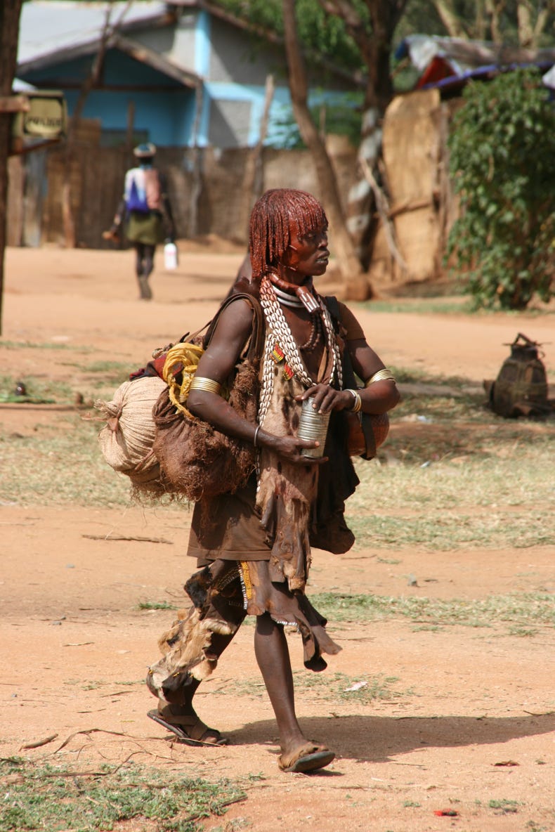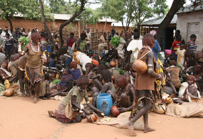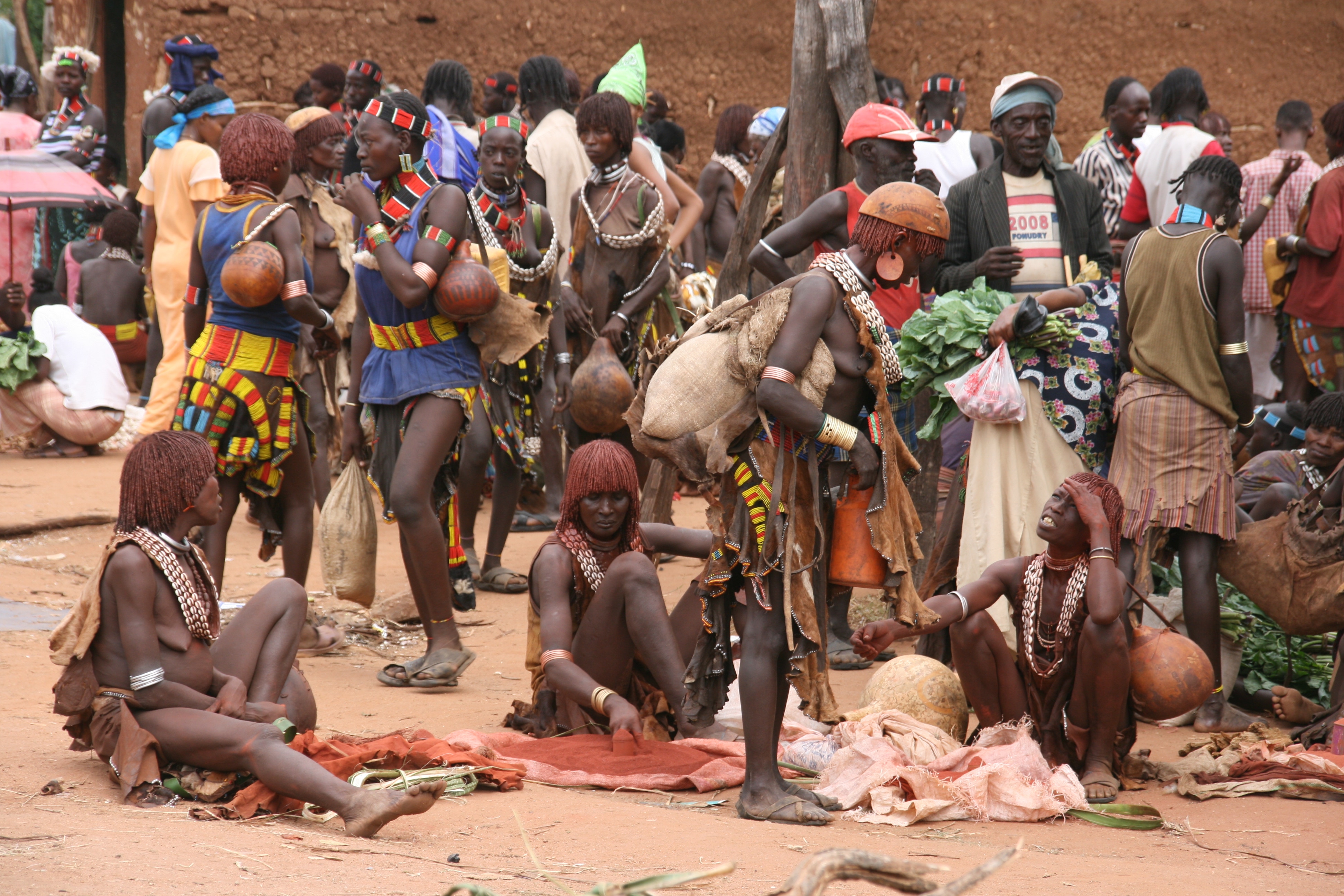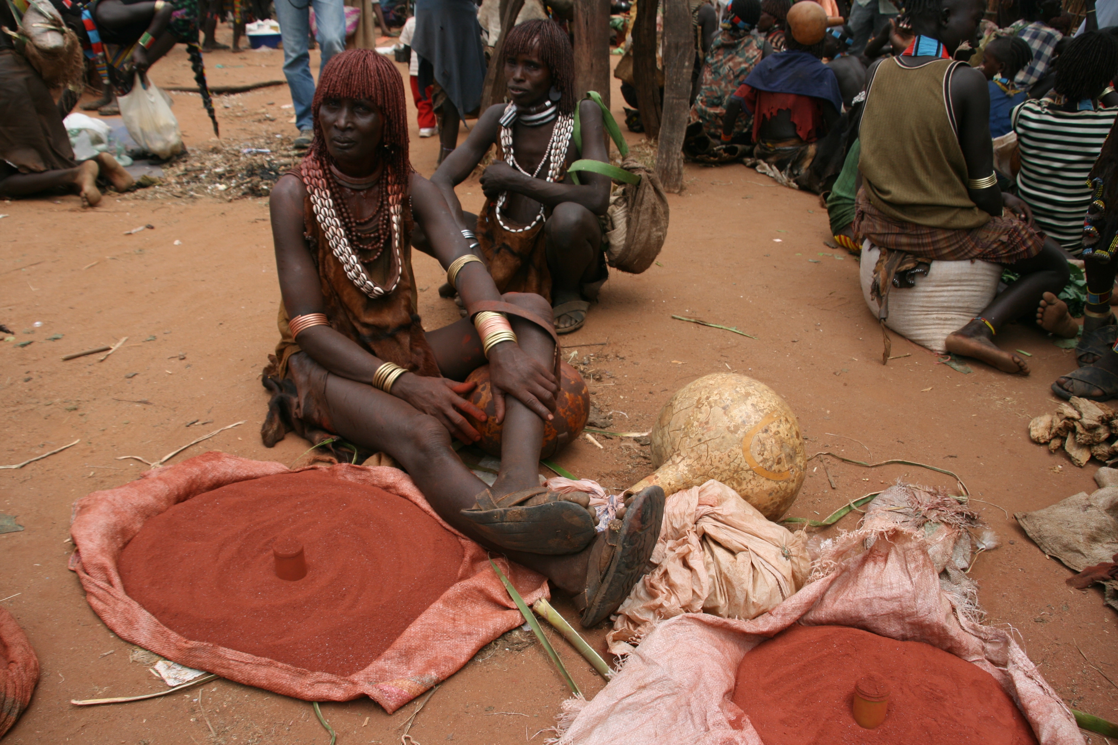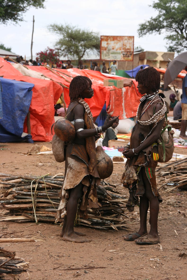 Saturday is market day in Dimeka, a small town that borders the territory of the Banna and the Hammer tribes. Both tribes still attire themselves in traditional dress, and the market was a riot of colour and activity. We arrived at 11:00 am, spent an hour and a half walking around, then had a long slow lunch of goat meat on injera followed by some of the strongest (and best!) coffee I have ever tried, before spending another hour or so exploring the market. Rather than trying to explain too much about the market, I will let a small sample of the photos I took today do the talking for me.