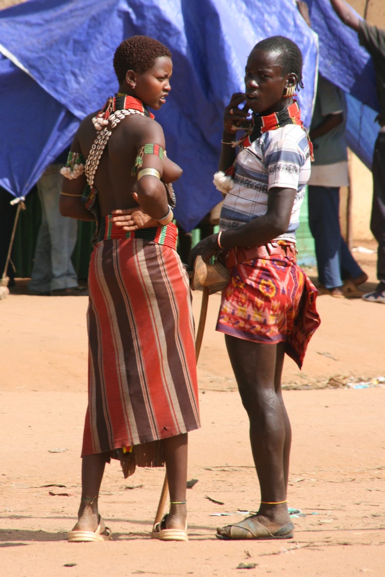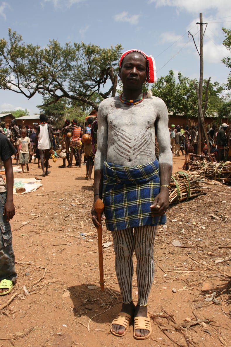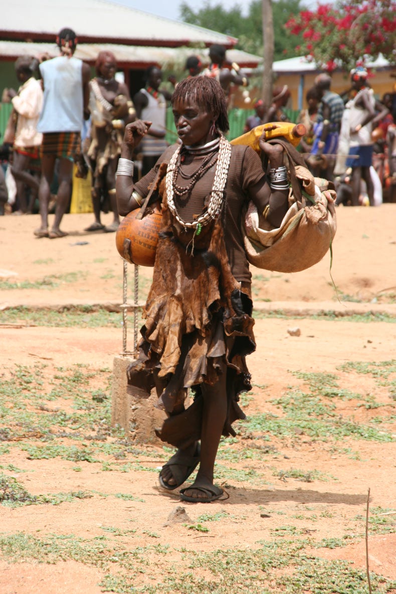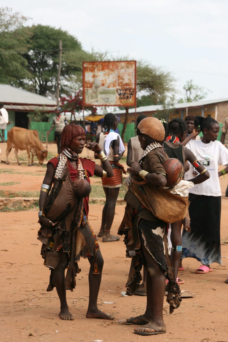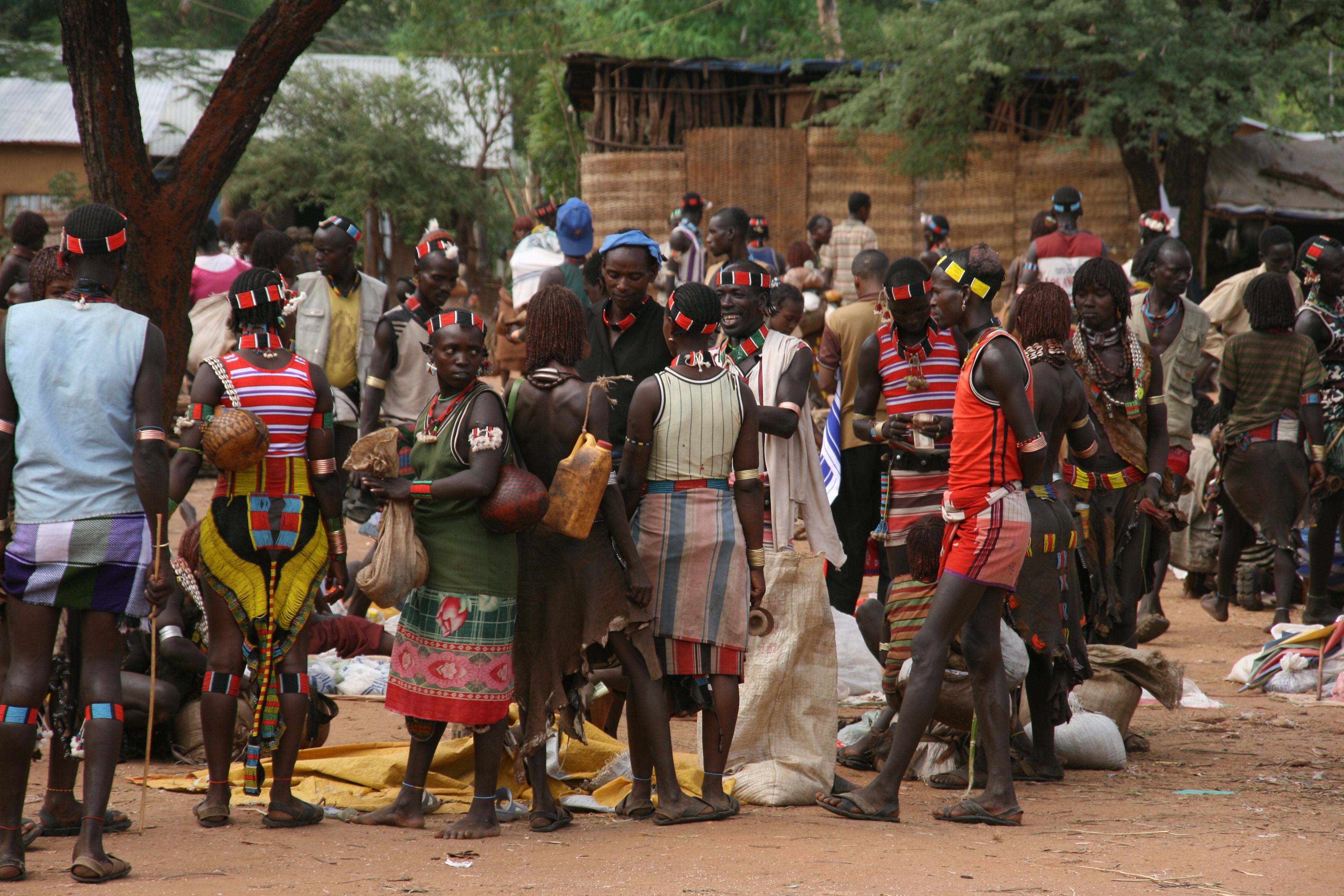 Saturday is market day in Dimeka, a small town that borders the territory of the Banna and the Hammer tribes. Both tribes still attire themselves in traditional dress, and the market was a riot of colour and activity. We arrived at 11:00 am, spent an hour and a half walking around, then had a long slow lunch of goat meat on injera followed by some of the strongest (and best!) coffee I have ever tried, before spending another hour or so exploring the market. Rather than trying to explain too much about the market, I will let a small sample of the photos I took today do the talking for me.