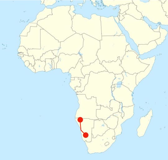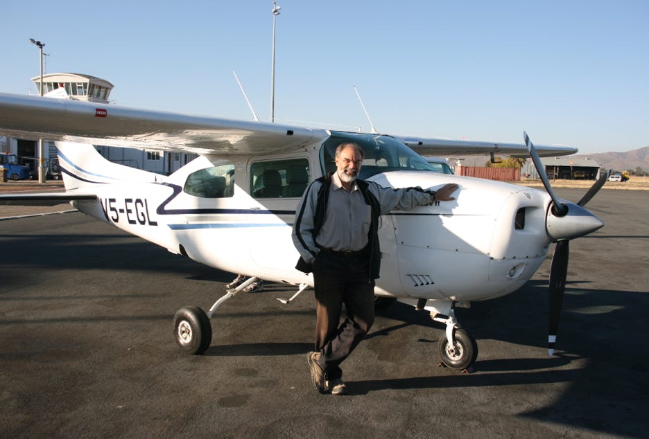 We woke in Windhoek to the sound of the alarm at 5:45 am. We were due to leave our guesthouse at 7:15 am to catch a small plane that would take us to the Kunene River Valley, which is in the remote, isolated north-west corner of Namibia on the border of Angola. We were a little late leaving, for two very good reasons. First, we we had a shower with hot water, which was a much appreciated novelty after a week in southern Ethiopia and we wanted to make the most of it. Secondly, the guesthouse served each of us some of the best breakfasts we have ever had. Andrew ordered eggs Canadian style, which meant they came with warm slices of bananas and cranberry sauce. I ordered eggs Norwegian style, which was scrambled eggs with smoked salmon and cottage cheese. To accompany the eggs, there was a delicious granola, fresh fruit with yogurt, and some of the best filtered coffee I have tasted for a long while. That is simply not the kind of breakfast that should be rushed.