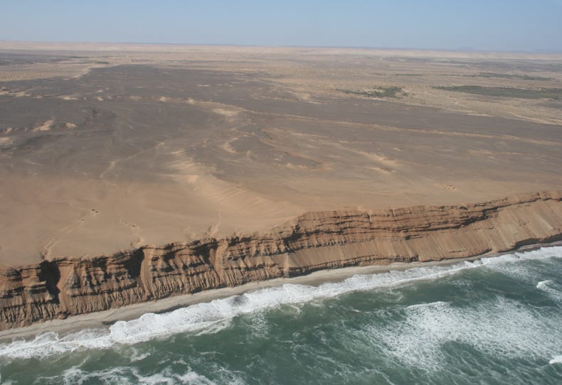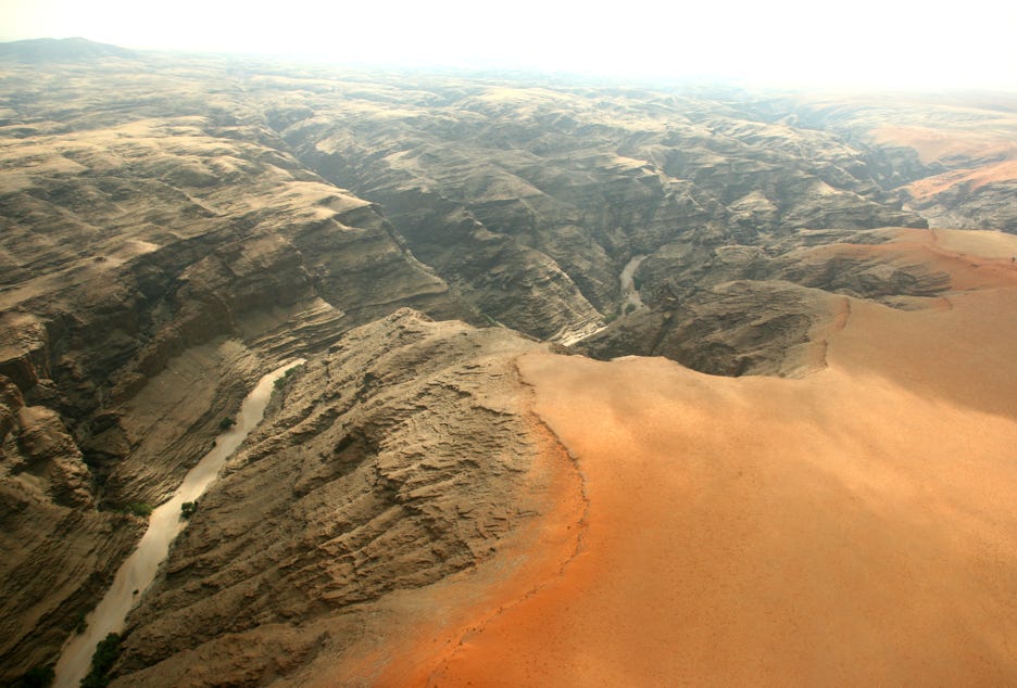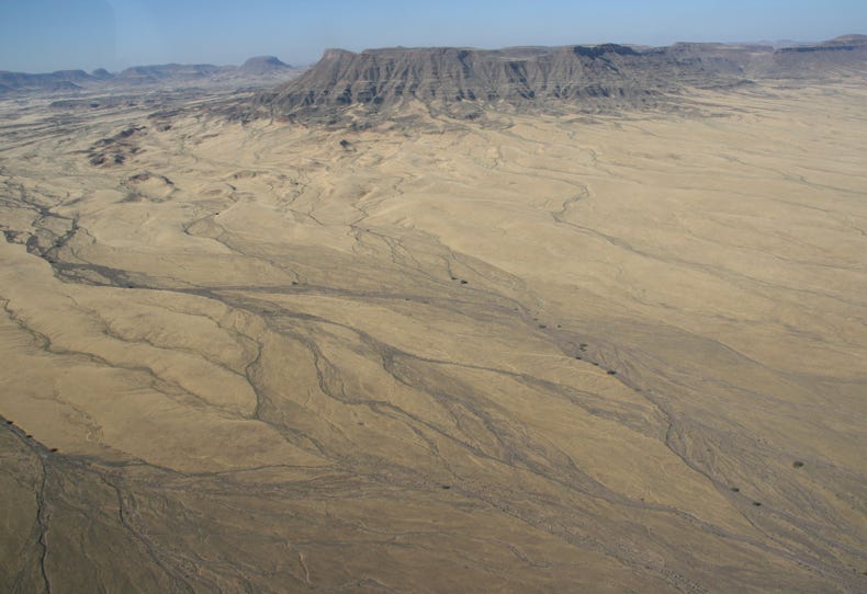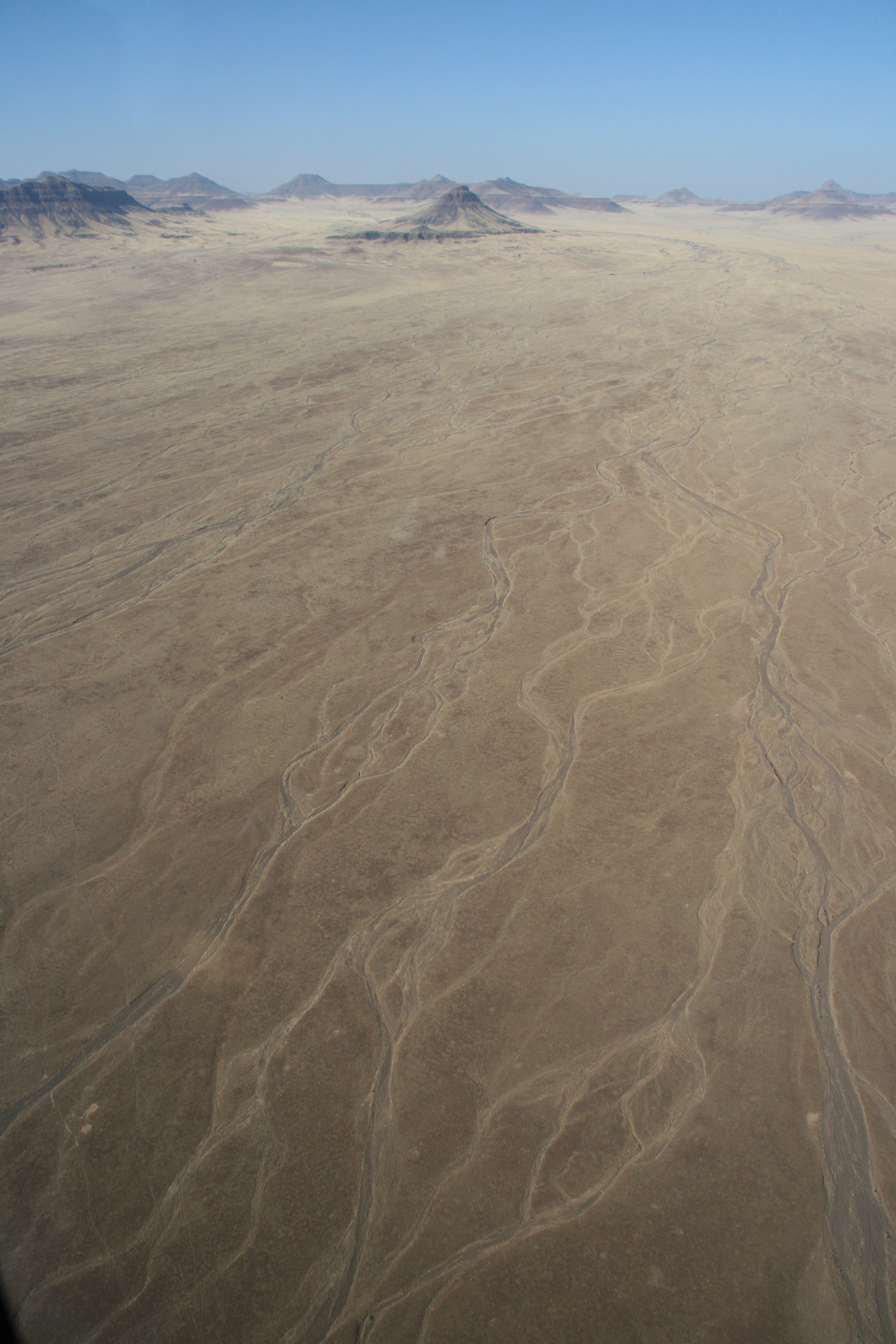 When we reached the mouth of the (dry) Munutum River, we turned inland, initially following the course of the river, but later turning northwards to cross a spectacular dune field and then a succession of arid and semi-arid landscapes with features such as mesas, buttes, ephemeral streams, braided river channels, alluvial fans, and so on.