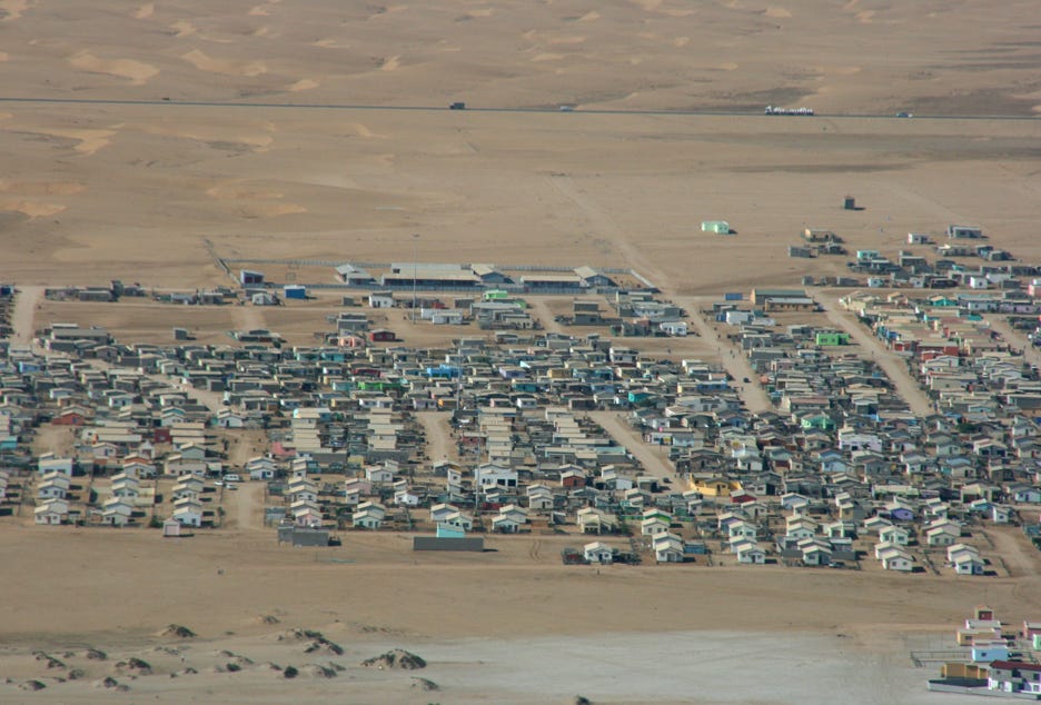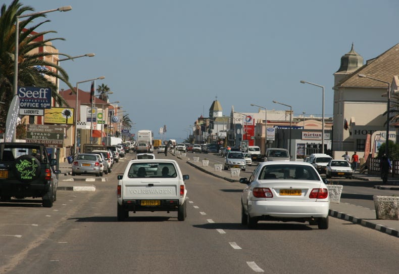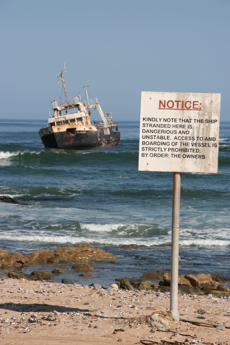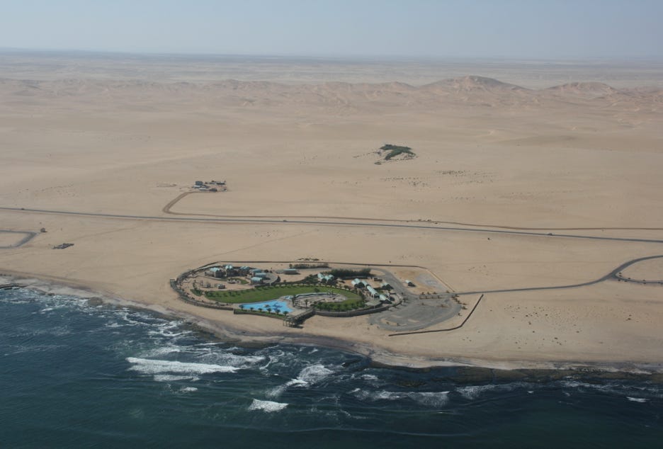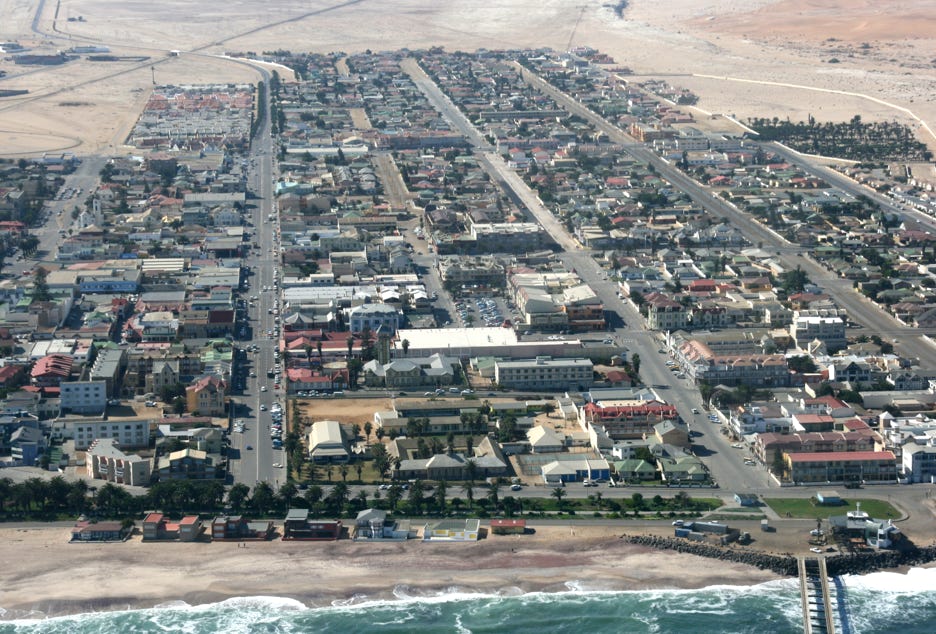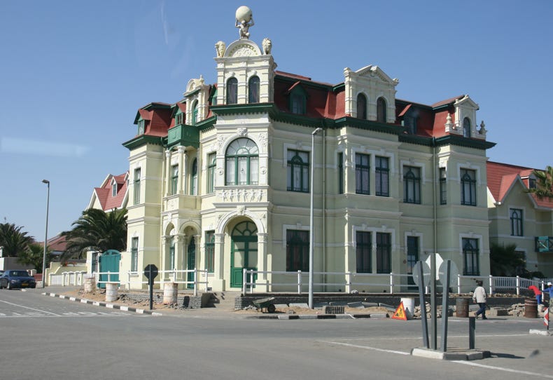 Swakopmund resembles a small, German town situated between the desert and the Atlantic Ocean. While the plane was refuelling, we spent a couple of tours looking around Swakopmund, and we were very impressed with what we saw. The town had some wonderful examples of historical German architecture, as well as some fascinating sights such as a recent shipwreck, salt evaporating flats, and a large coastal lagoon where several flocks of flamingos were seen.