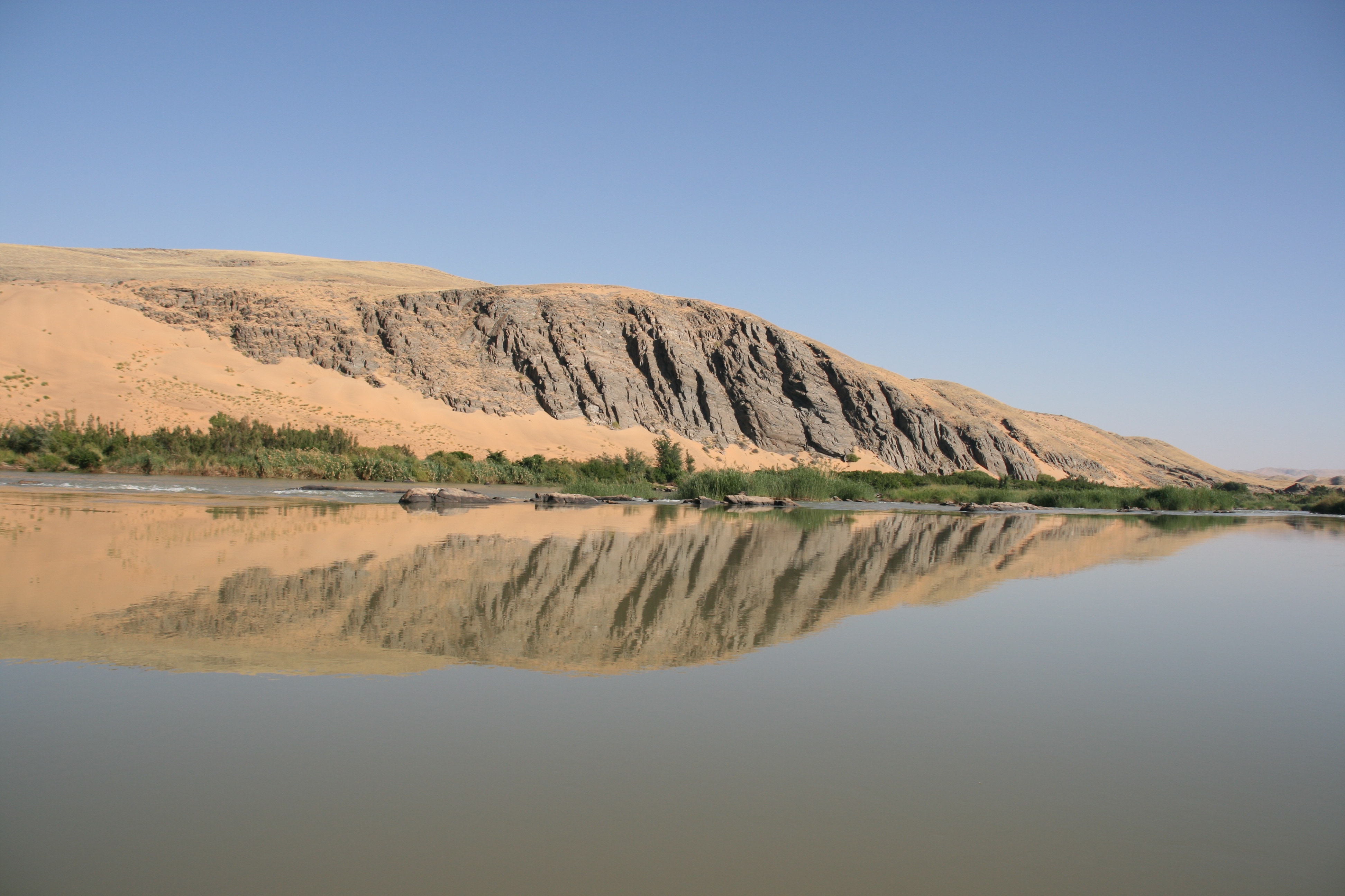 The reason for the early start was to have an early morning boat trip on the Kunene River, while the river waters were fairly still and the wildlife could still be seen. It was an almost primordial experience to drift along the river as the sun was about to rise, watching the mist rise in apparent slow motion from the water’s surface, listening to the chorus of bird calls and watching seemingly prehistoric reptiles such as large lizards, monitors and crocodiles slink into the dark water. We even saw a few of the nomadic Himba people, some gathering water and one fishing.