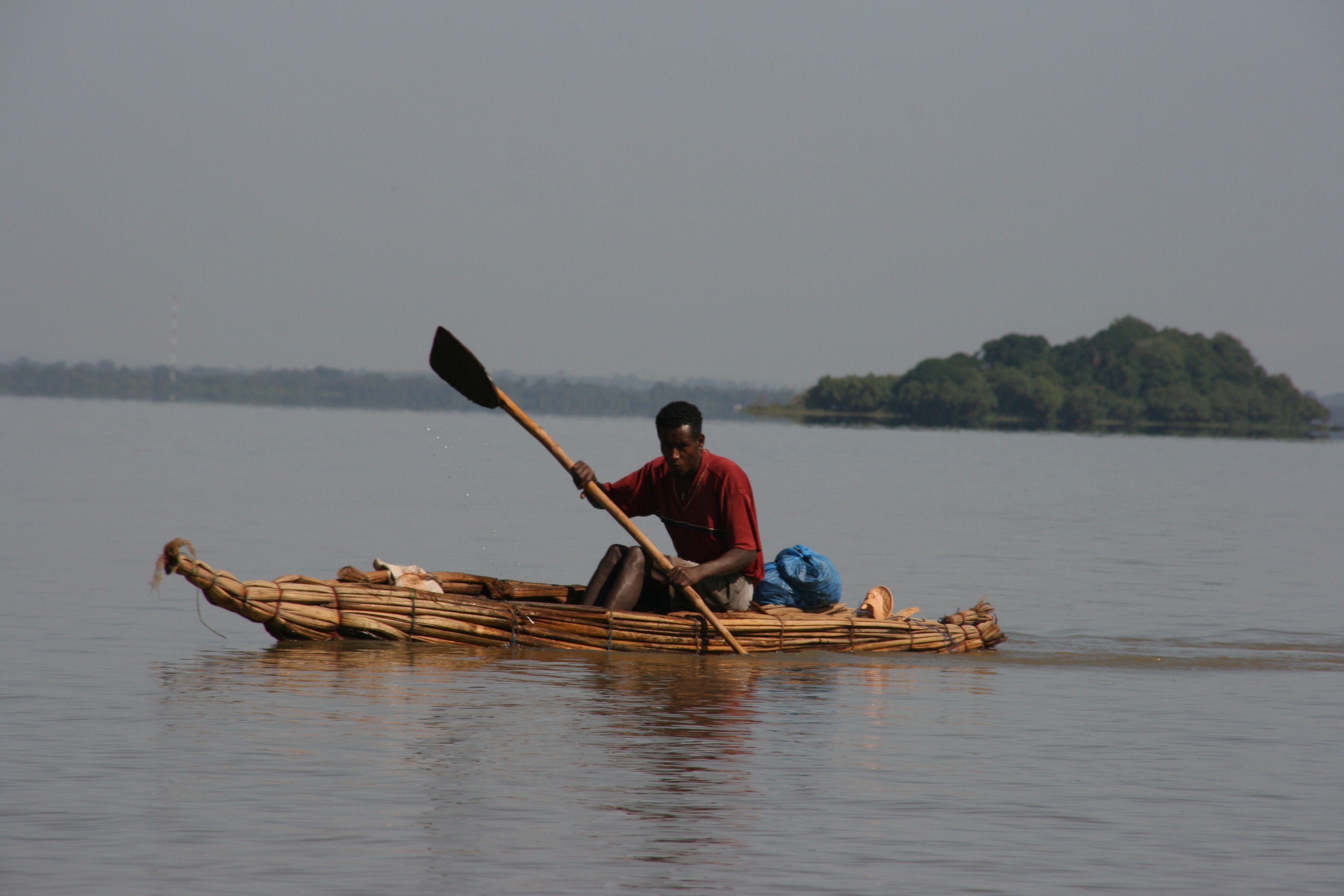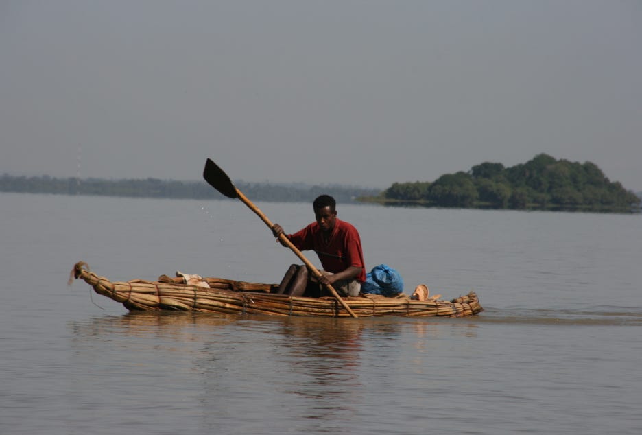 After leaving our bags at the hotel, our first destination was one of the monasteries on the lake. The one selected was the Ura Kidane Meret Monastery on Zege Peninsula, and to get there, a boat trip of an hour or so was required. As is often the case, getting there was half the fun, as the boat puttered its way across the smooth waters of the lake, past papyrus boats with fishermen and between low-flying flocks of pelicans.