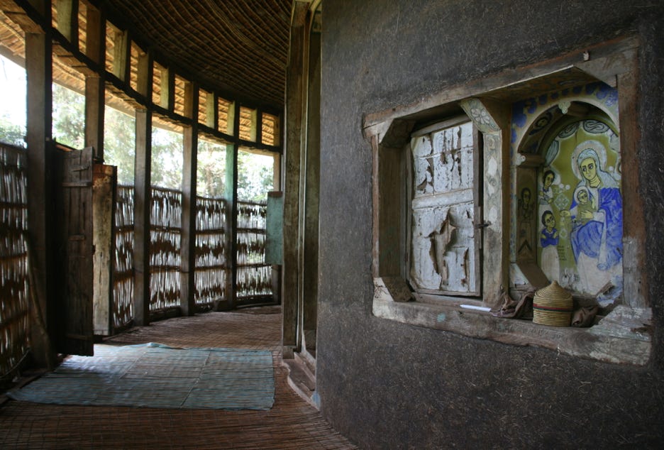 Once we reached Zege Peninsula, a 20 minute hike was needed through the monkey and ant-infested forest, and past a village to reach the monastery itself. But it was certainly worth it. Like most of the lake’s monasteries, the Ura Kidane Meret was round in shape (representing the world), and divided into three concentric circles (representing the trinity). In the centre was the Holy of Holies, which was not accessible to anyone but the priests. The outer ring was a shady area for praying and meditation, while the inner ring was where services are held. The priests officiate on the western side, the men gather on the northern side, the women gather on the southern side, and the eastern side is used for the overflow of men and women (who remain separate nonetheless).