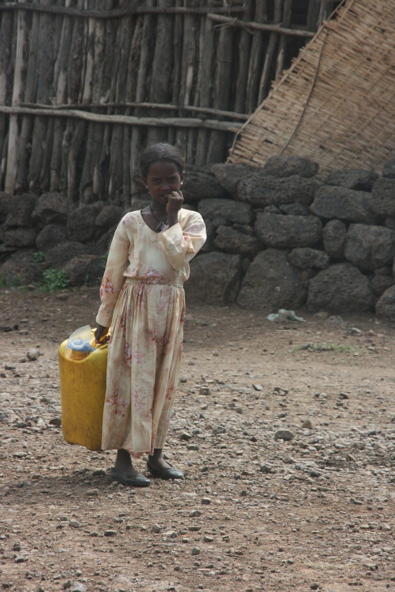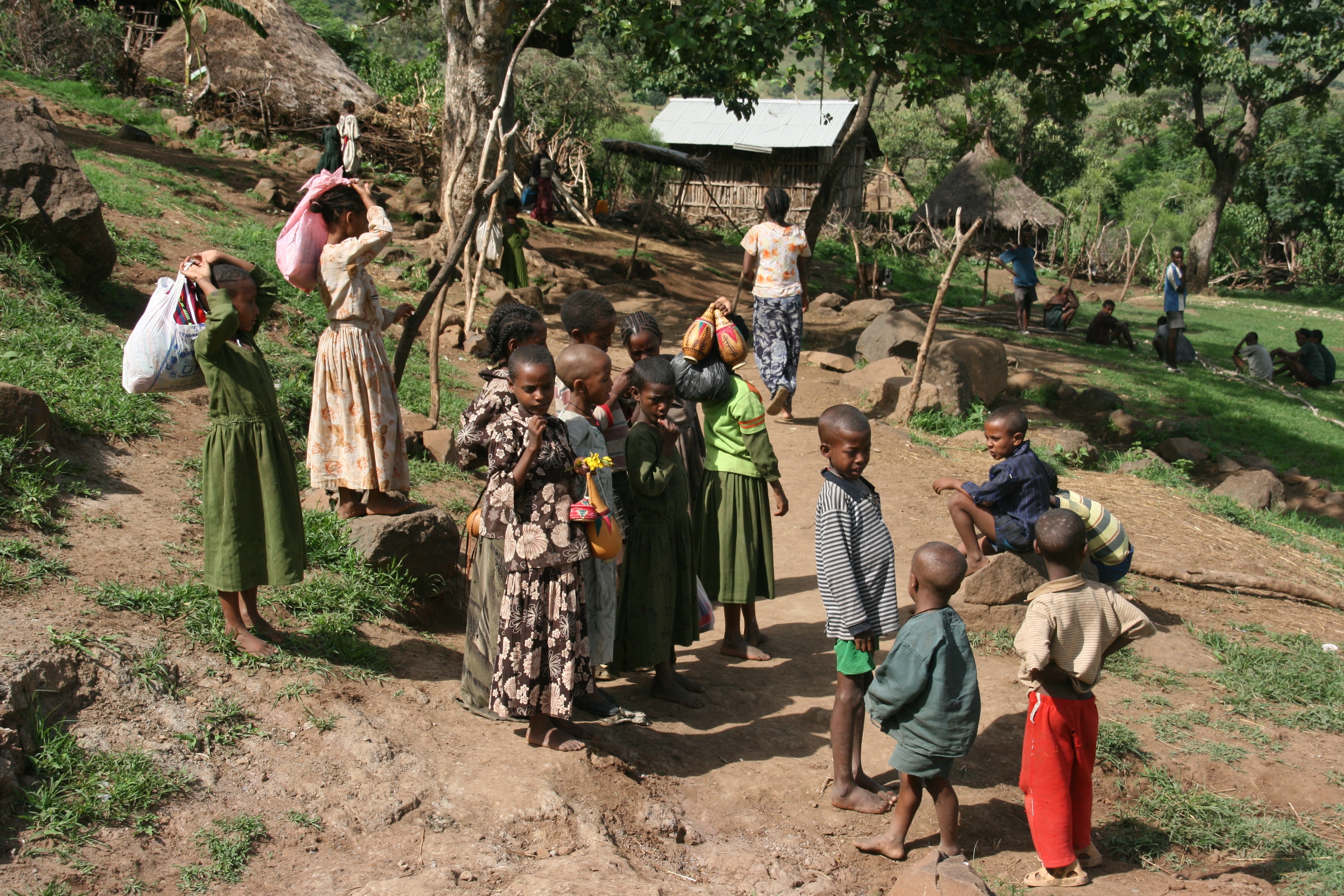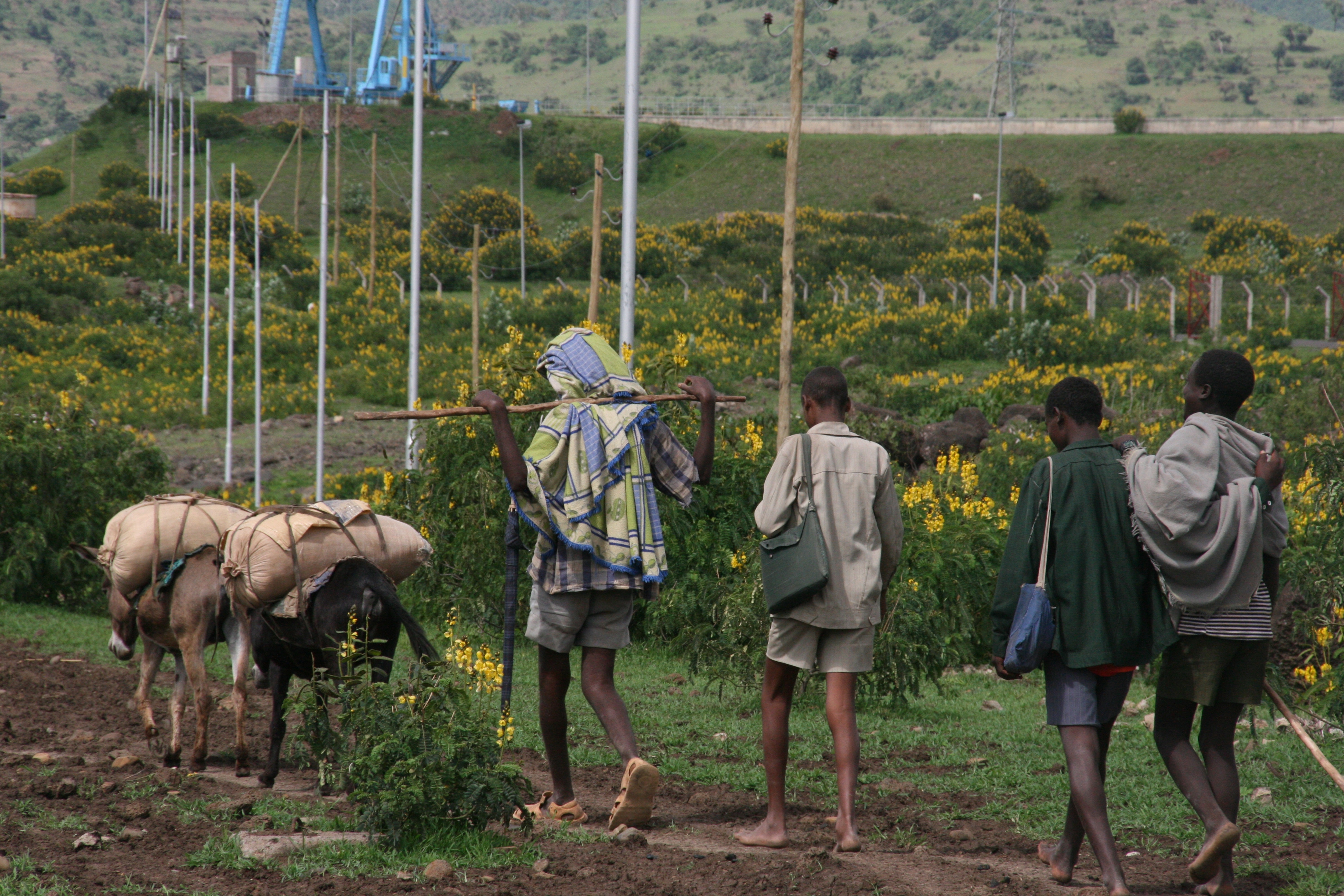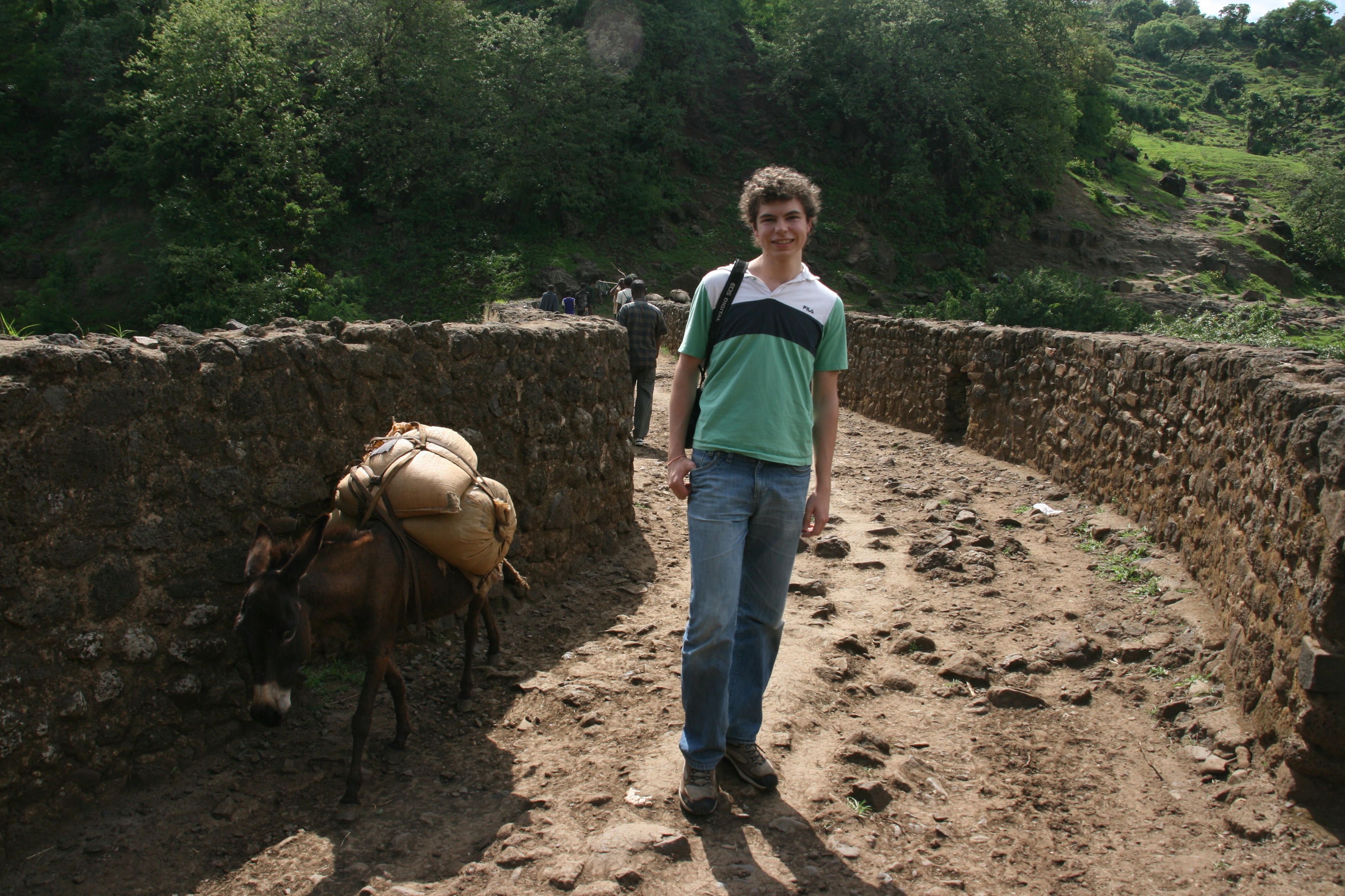 After lunch we set off for a very bumpy 45 minute (32 kilometre) minibus drive to Tis Isat, otherwise known as the Blue Nile Falls. The countryside we drove through was quintessential Ethiopia, with savanna vegetation, herds of cattle being tended by young boys, lines of people wrapped in blankets and carrying walking sticks walking single file along the side of the road (always the men leading and the women following), and small villages with a mix of traditional conical wooden huts and more modern rectangular huts, interestingly usually built with quick-growing, cultivated Australian eucalypt trees. The countryside was green and prosperous, and certainly portrayed very little of the depressing stereotypes we often read in articles about Africa.