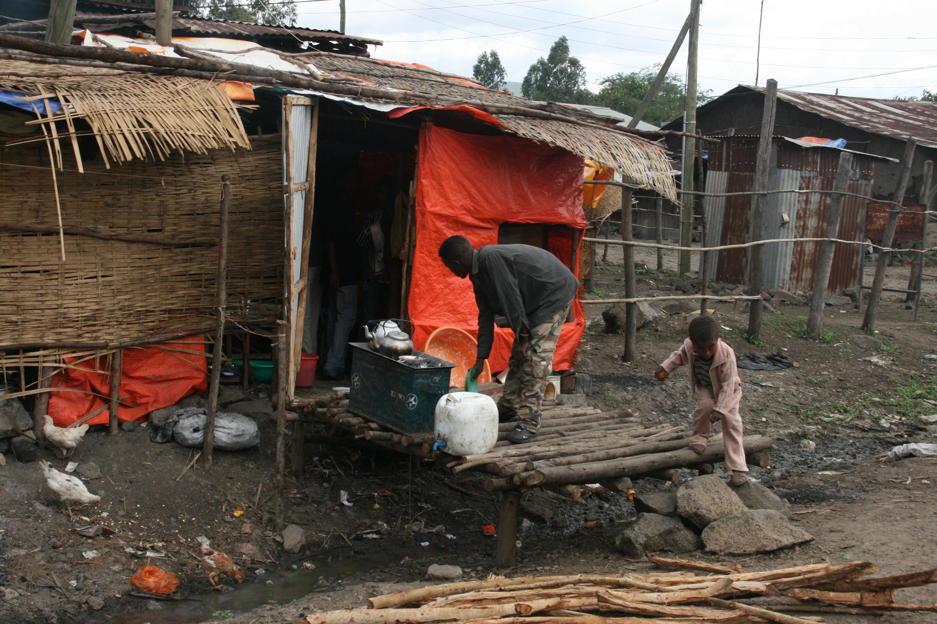 We almost didn’t make it. When we tried to check-in, we were told that we didn’t have a confirmed booking (even though the e-ticket receipt clearly said ‘confirmed’). We sorted that out, and then they said only Andrew had a booking and I did not. We sorted that out, and then they said we were checking in so late we would miss the flight (it was 6:50 am, although we had started the process at 6:30 am!). That seemed absurd, until it was pointed out that the flight has been rescheduled to depart at 7:10 am and boarding had already begun at 6:25 am - quite a generous amount of time to board a 50-seat Fokker F-50, I think. Anyway, in the end , they accepted our luggage and told us to hurry, which we did, being ushered through the security check ahead of the line of other passengers, onto the bus and out to the plane. There was no allocated seating, so we took the last two seats available, and sat for 10 minutes until the plane powered up to depart. Remarkably, and impressively given the rush, our luggage arrived at Bahar Dar with us 55 minutes later - maybe that was the reason for the ten minute wait on the tarmac???