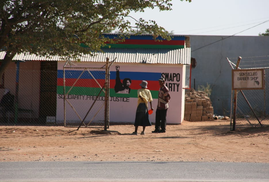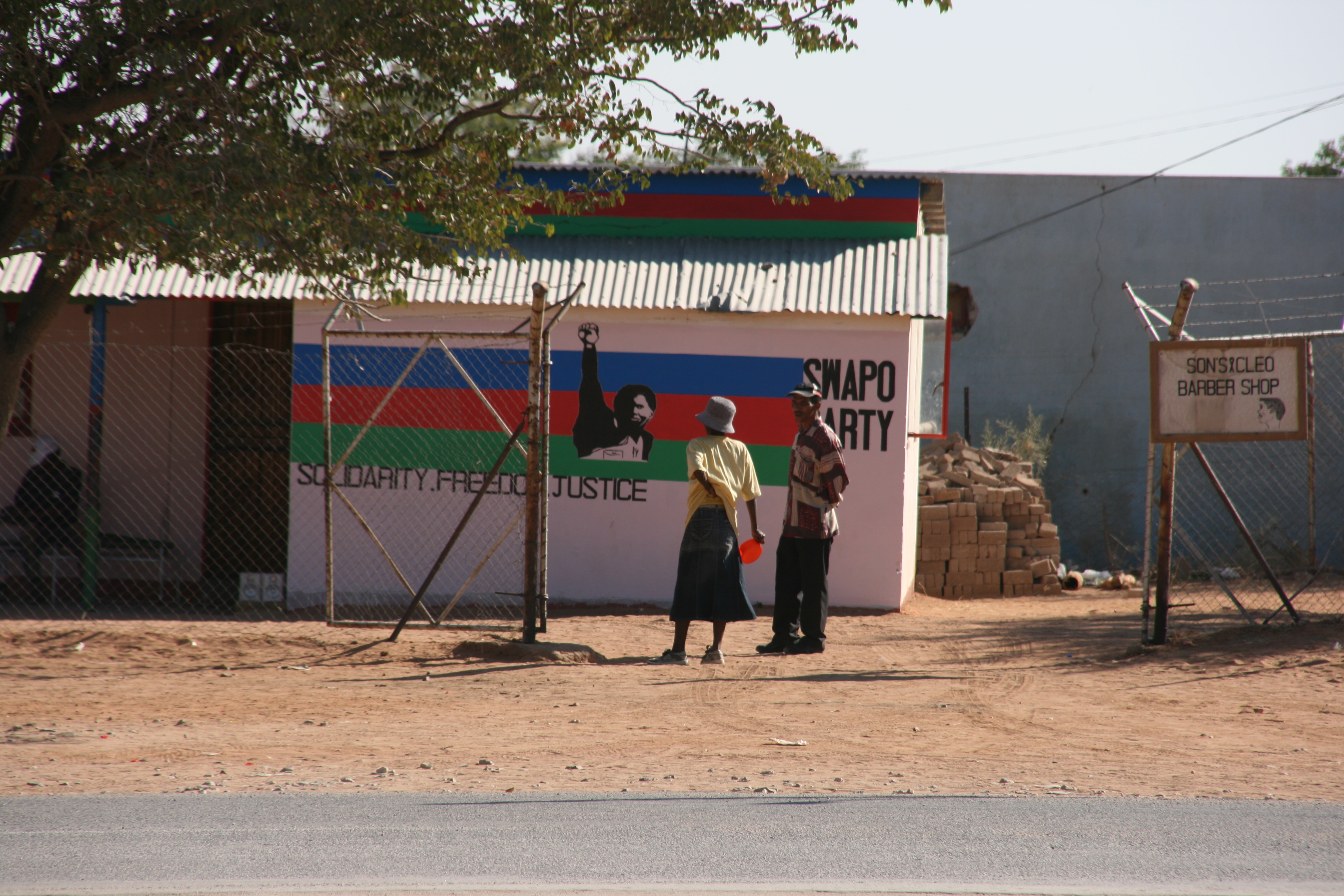 We had a great picnic lunch while at the Petrified Forest, and then we began the afternoon drive to the Etosha Salt Pan, our destination for the evening. The drive of almost 300 kilometres took us along generally smooth and mostly sealed roads, passing through only two towns en route. The first town, Khorixas, was used as a refuelling stop and an opportunity for me to get some cash from an ATM. In almost every way, Khorixas reminded me of a typical town in central Australia, such as a smaller version of Alice Springs for example. It is the nearest thing I have seen to a central Australian town outside central Australia.