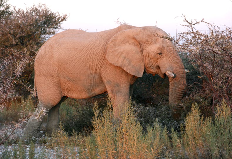 We left the campsite at 7:15 am after an excellent breakfast of fresh, tasty foods, and drove around until he finally acknowledged defeat at 9:30 am. At times it was like living through a Russell Coight adventure. He asked directions at one stage, but seemingly convinced that the people he was talking to at the motor garage were trying to mislead him, he drove off in the opposite direction. He kept taking tracks that he “knew” were good short-cuts, only to find them peter out in the scrub. We did find some fresh elephant tracks, with some fresh droppings and even some recently deposited elephant urine, but rather than follow the way the elephants seemed to have gone, he preferred to stay on established tracks despite having a 4WD, and follow his instincts. It wasn’t exactly like Russell Coight of course; Russell Coight sometimes actually knows the difference between right and left, and Russell doesn’t use mascara.