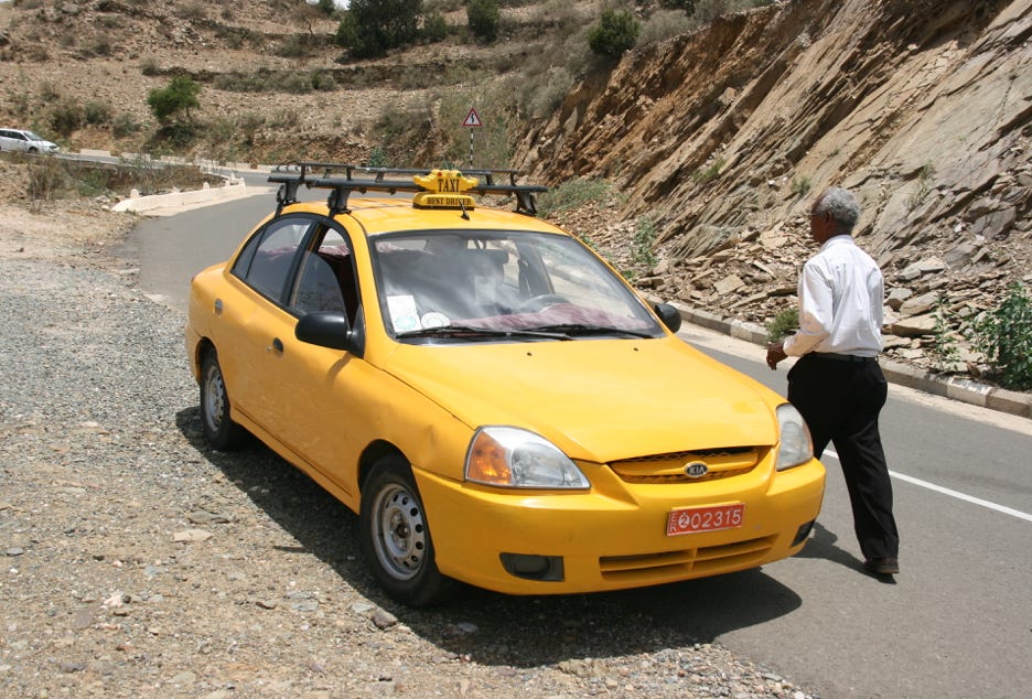 However, all was not lost. Haile, our taxi driver, offered us the choice of spending the afternoon exploring Asmara (as planned) or taking a round-trip of about 250 kilometres for Massawa, a town of 40,000 people on the Red Sea coast to the north-east of Asmara. As our original plans had involved a full-day trip to Massawa, which was described in the guidebooks as one of Eritrea’s ‘must-see’ locations, we accepted the offer of the long drive – certainly a long drive for a little yellow Kia taxi that usually plies the streets of Asmara.