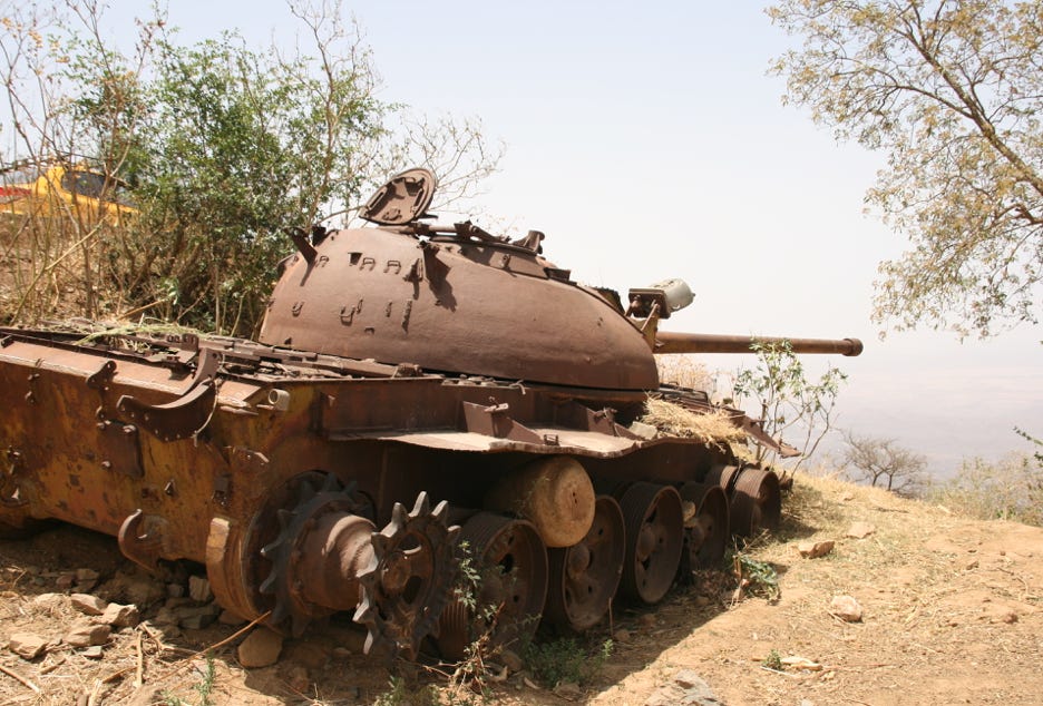 For the trip to Massawa, we took a newly built road via Filfil, which provided dazzling views of the remarkable escarpment and the road that twisted back and forth to make the descent. At one stage, we came across a rusting Soviet tank that had been used by Ethiopian troops to defend a mountain pass during the war that resulted in Eritrea’s separation from Ethiopia.