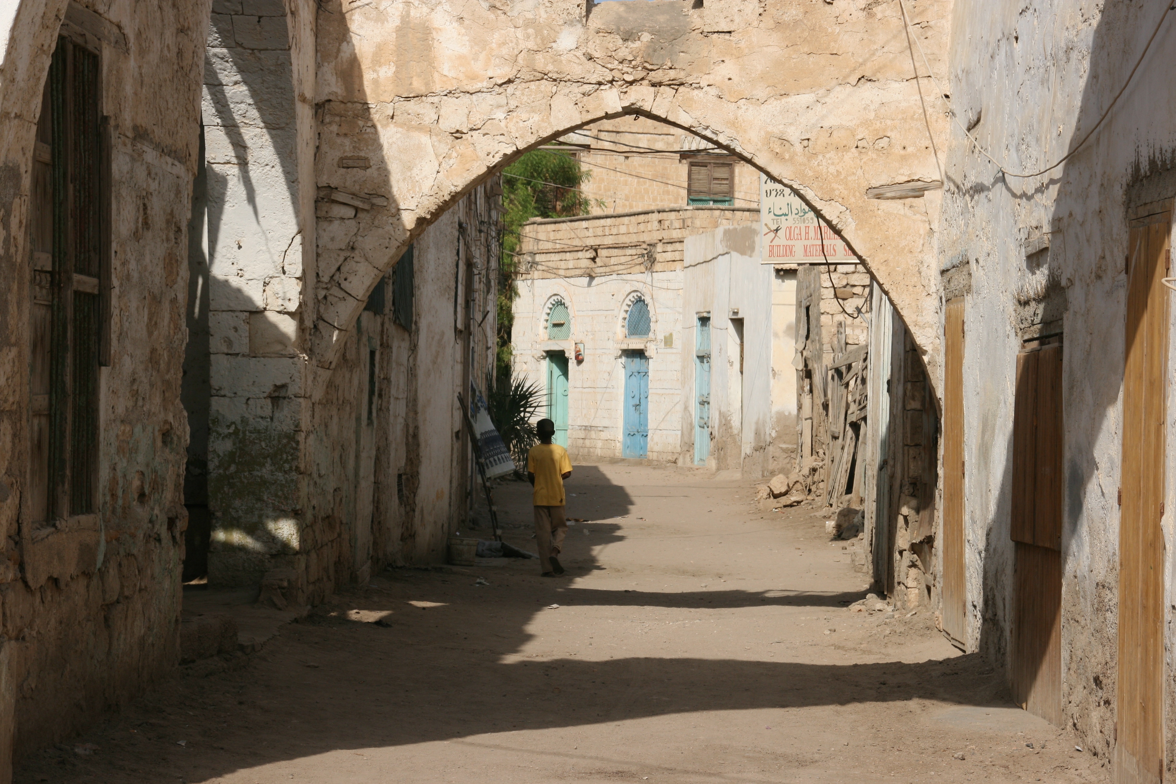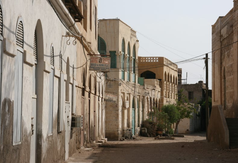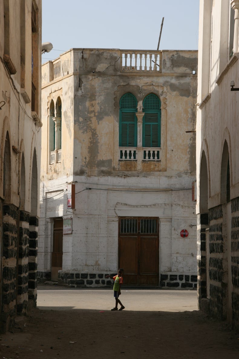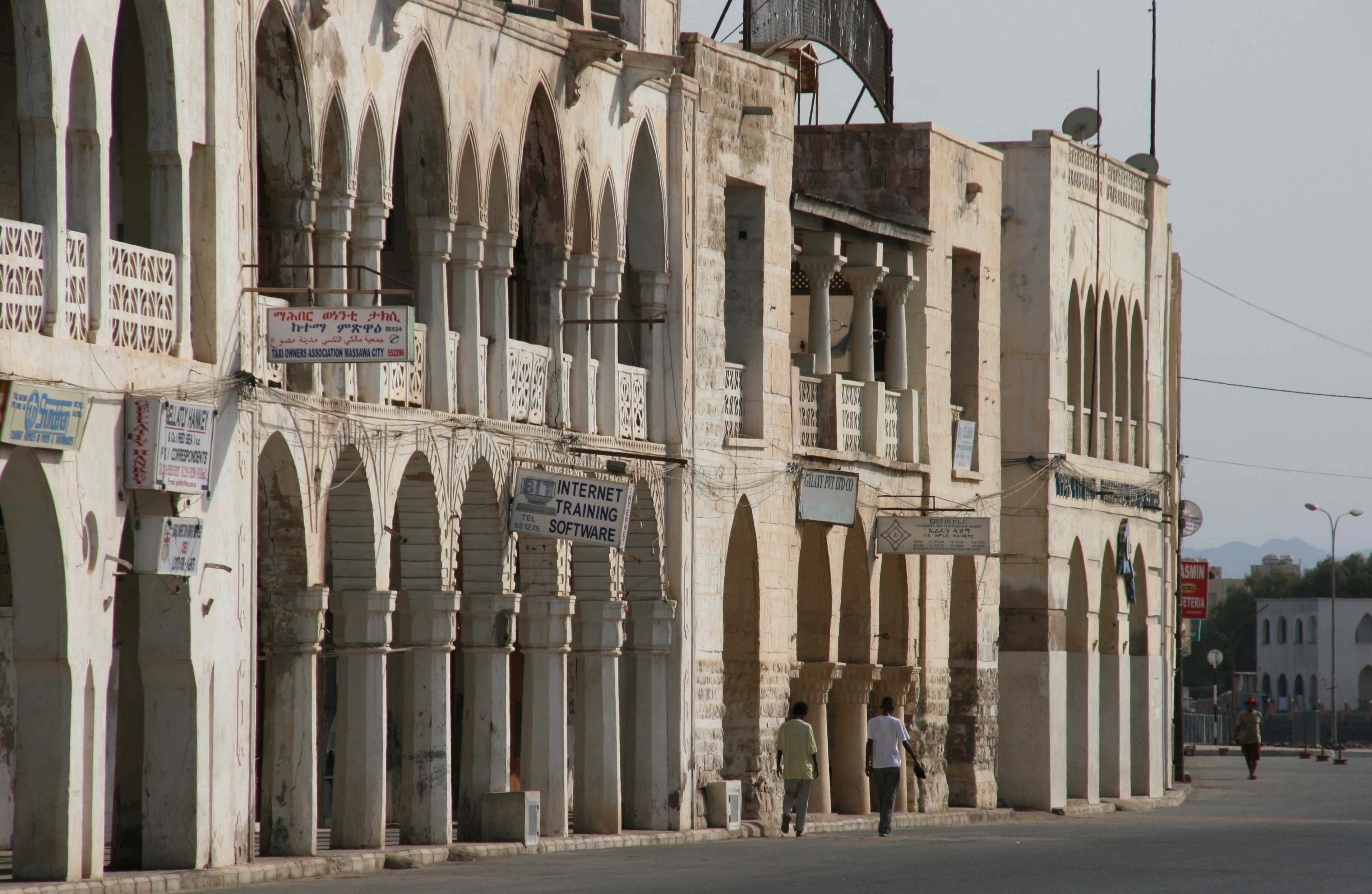 Our main aim in going to Massawa was to explore the old town, which was described in my reading as a gem of a place, reminiscent of the old stone town of Zanzibar. To be fair, I thought Massawa was well short of being another Zanzibar, but it did have great character, and the combination of whitewashed portico buildings and narrow alleyways was without doubt worth the long, hot drive to get there. Sadly, it was very clear that Massawa had suffered extensive damage during the most recent war (in the late 1990s), and many of the buildings were just shot-up empty or half-destroyed shadows of their former selves.