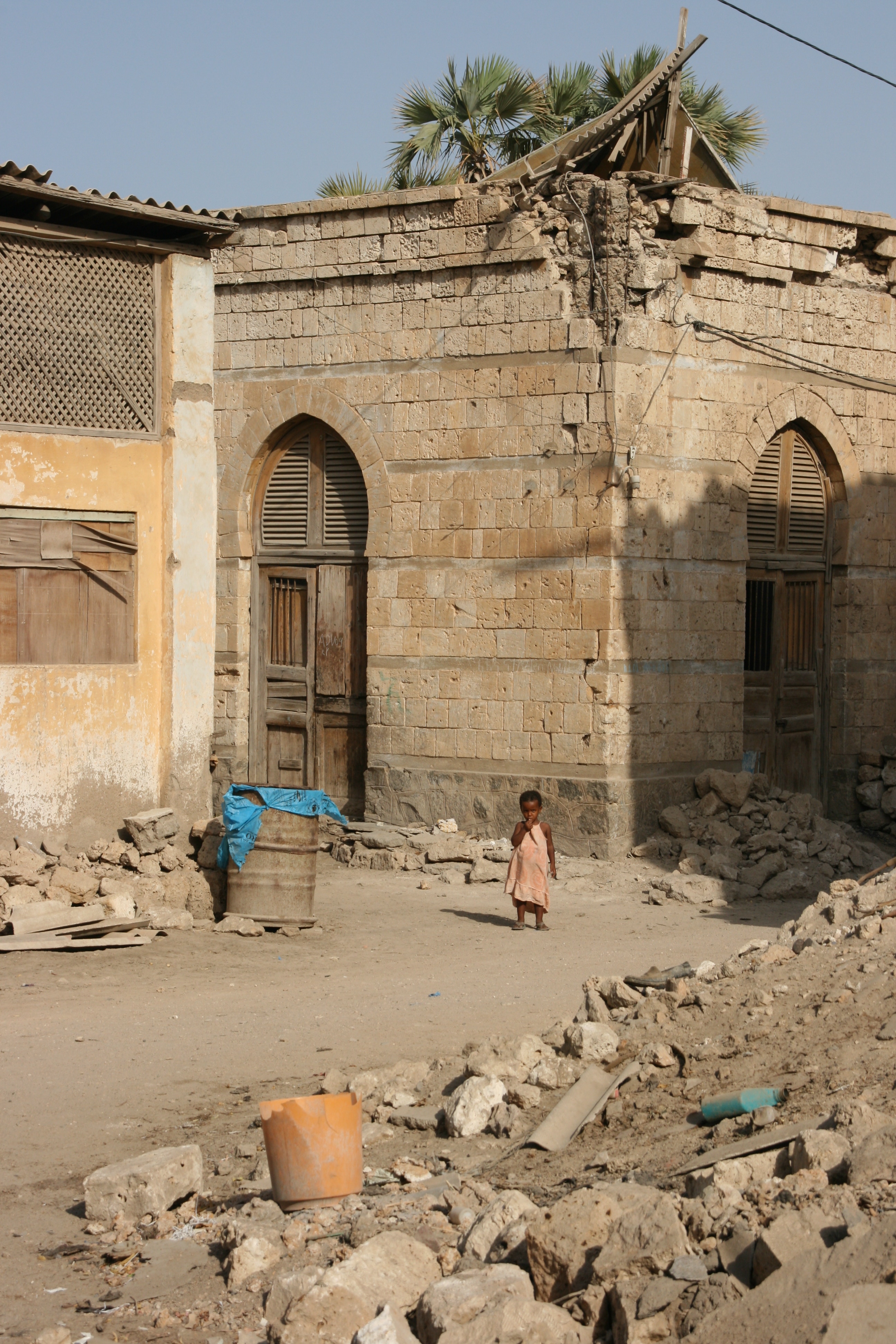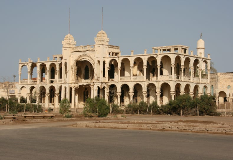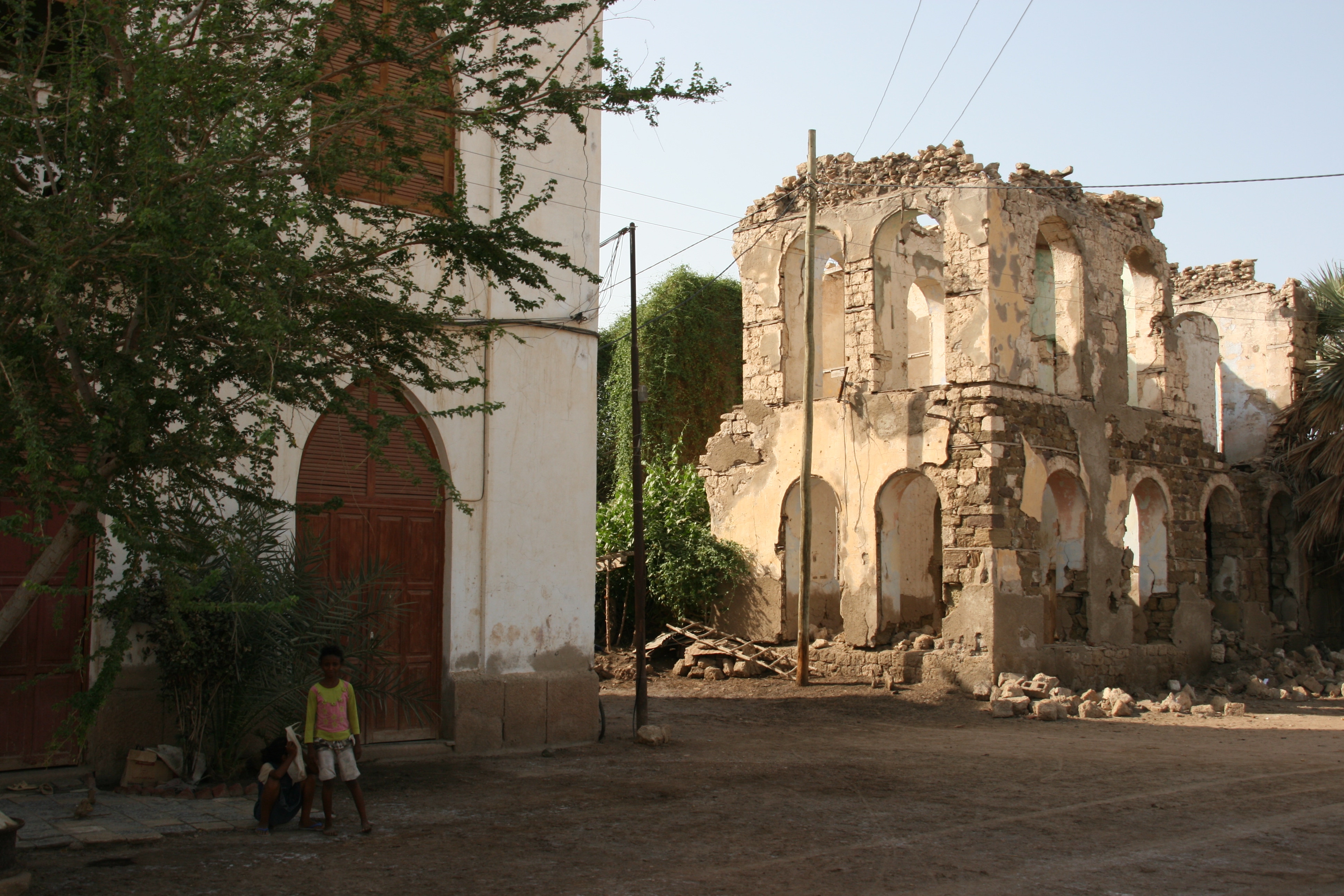 Our main aim in going to Massawa was to explore the old town, which was described in my reading as a gem of a place, reminiscent of the old stone town of Zanzibar. To be fair, I thought Massawa was well short of being another Zanzibar, but it did have great character, and the combination of whitewashed portico buildings and narrow alleyways was without doubt worth the long, hot drive to get there. Sadly, it was very clear that Massawa had suffered extensive damage during the most recent war (in the late 1990s), and many of the buildings were just shot-up empty or half-destroyed shadows of their former selves.