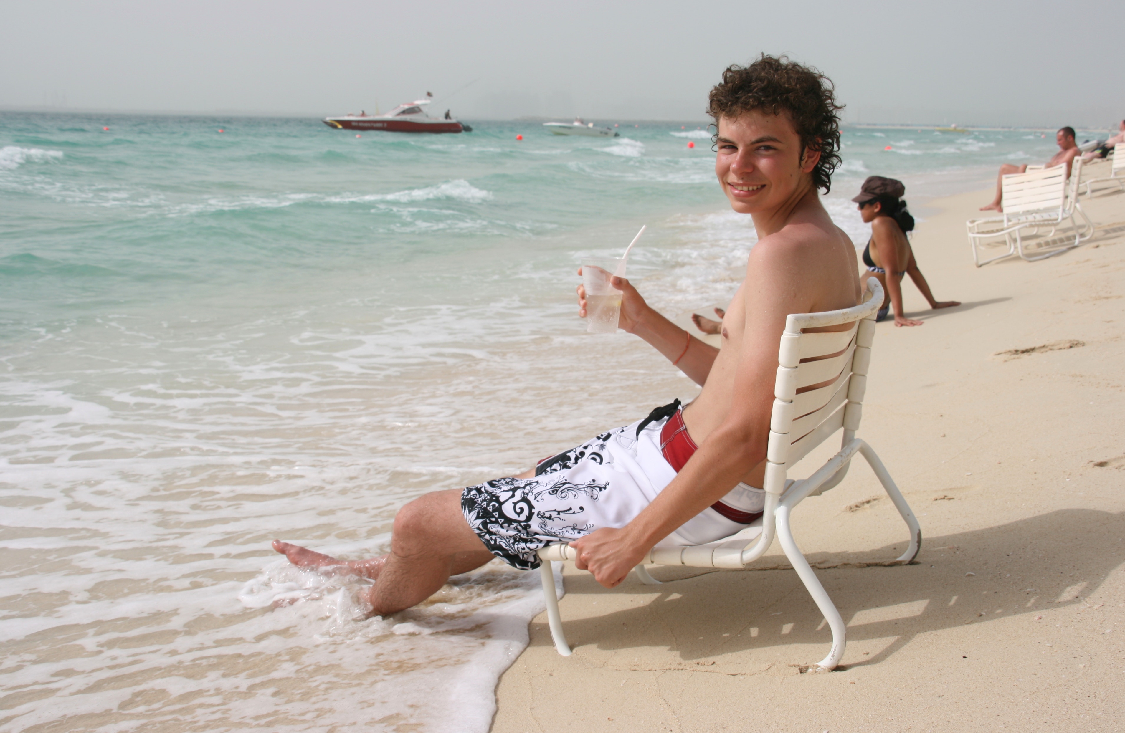 exclusively by foreign tourists rather than locals, and judging from the accents overheard, many of the tourists are from Russia and the UK. I thought the camels on the beach were a nice touch - just a hint of tradition amidst the jungle of high rise development that is Jumeirah. Lying on a beach in temperatures of 42 degrees (with no wireless internet!) is not necessarily my first preference for a way to spend the day, but Andy had a great time, which is the important thing.