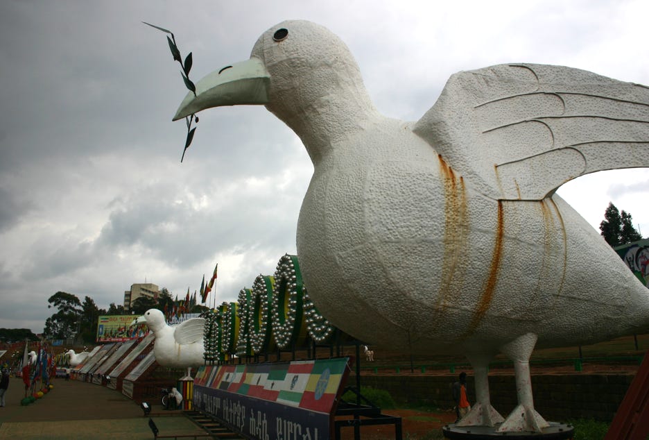 Our flight to Addis Ababa took two and a half hours, including the 10 minute stop-off in Gonder to collect passengers - a stop that transformed a one-third-full plane to an absolutely full one. The flight into Addis Ababa was somewhat bumpy because of the storm clouds in the immediate vicinity, clouds which burst into steady rainfall just as we reached our hotel.