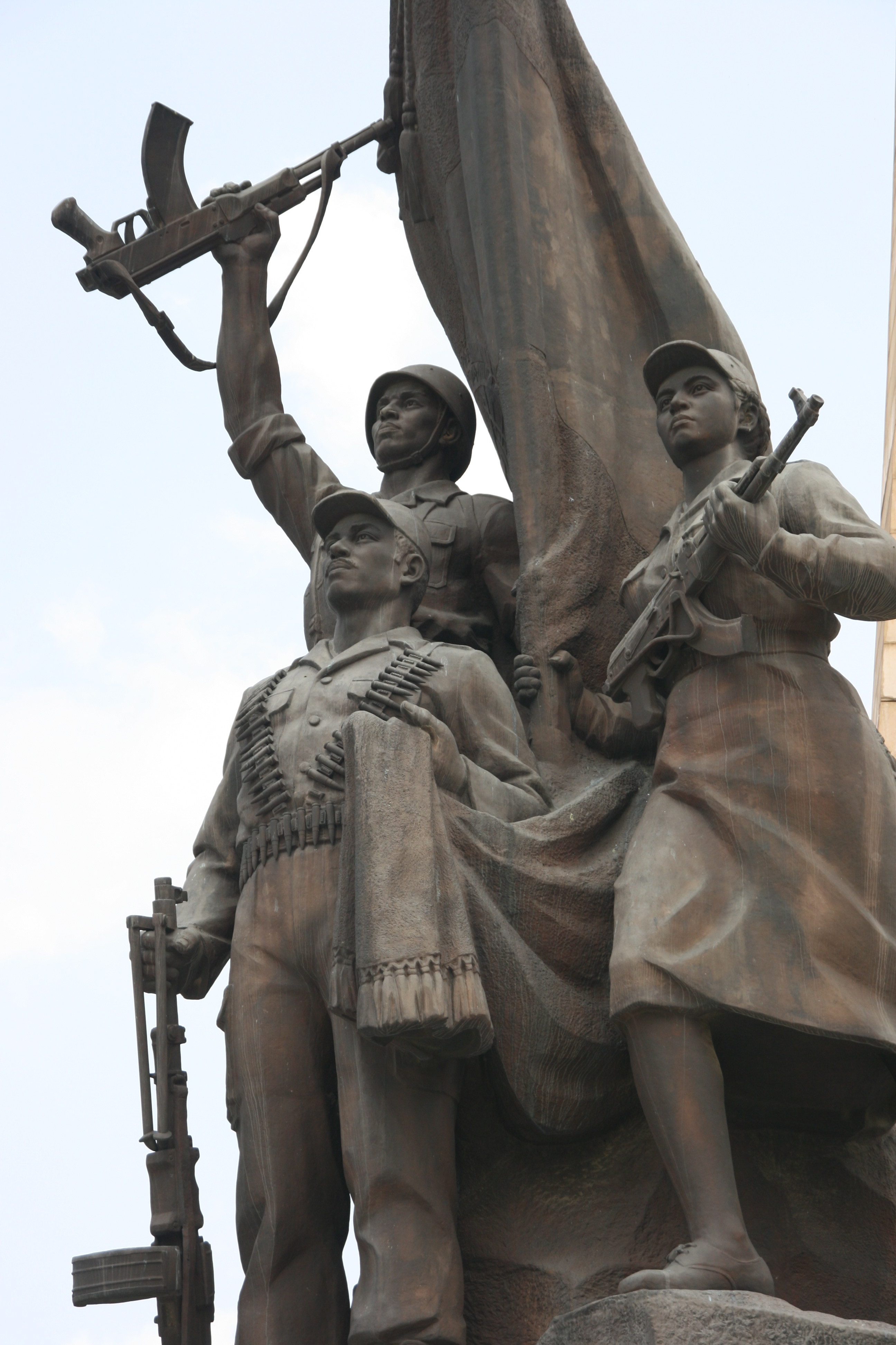 The centrepiece of the Derg Monument park was a tall obelisk topped with a red star and decorated with a golden hammer and sickle. At the foot was a sculpture in socialist realist style glorifying the revolutionary spirit of the workers, soldiers and peasants, flanked by two huge sculptures that could have been found in any Chinese city during the Cultural Revolution (or North Korea today) if it were not for the different ethnicity of the figures. Flanking each side of the park were gates into quiet parklands that were shaped like missing soldiers, surrounded by photographs of revolutionary martyrs. The whole park was a surprisingly well executed and deeply moving memorial.