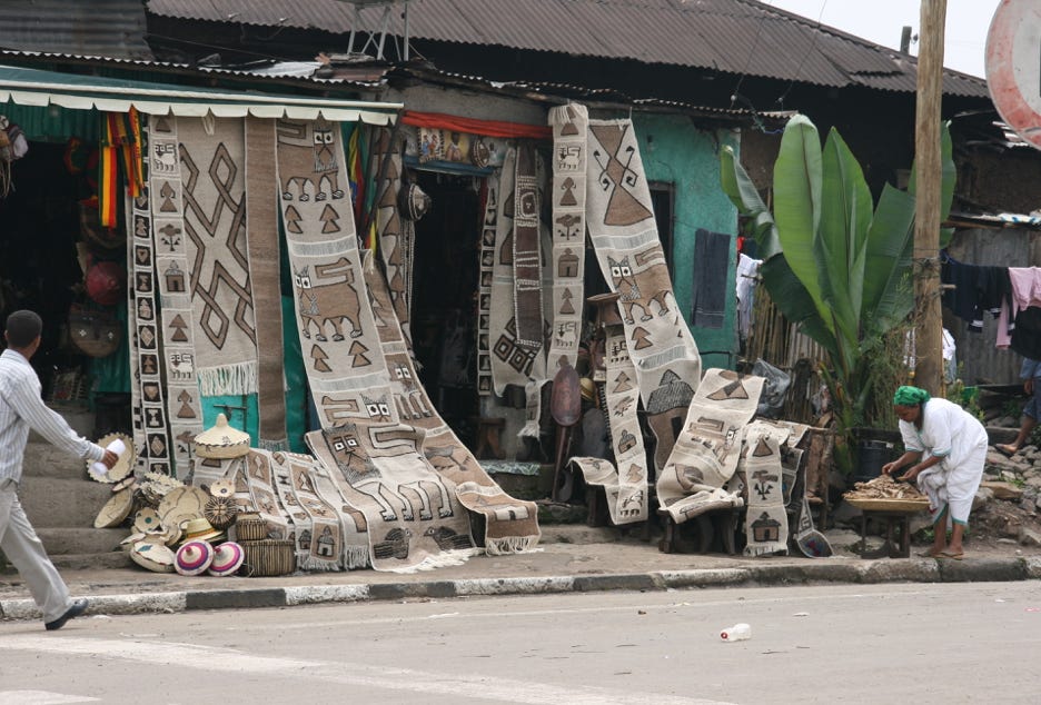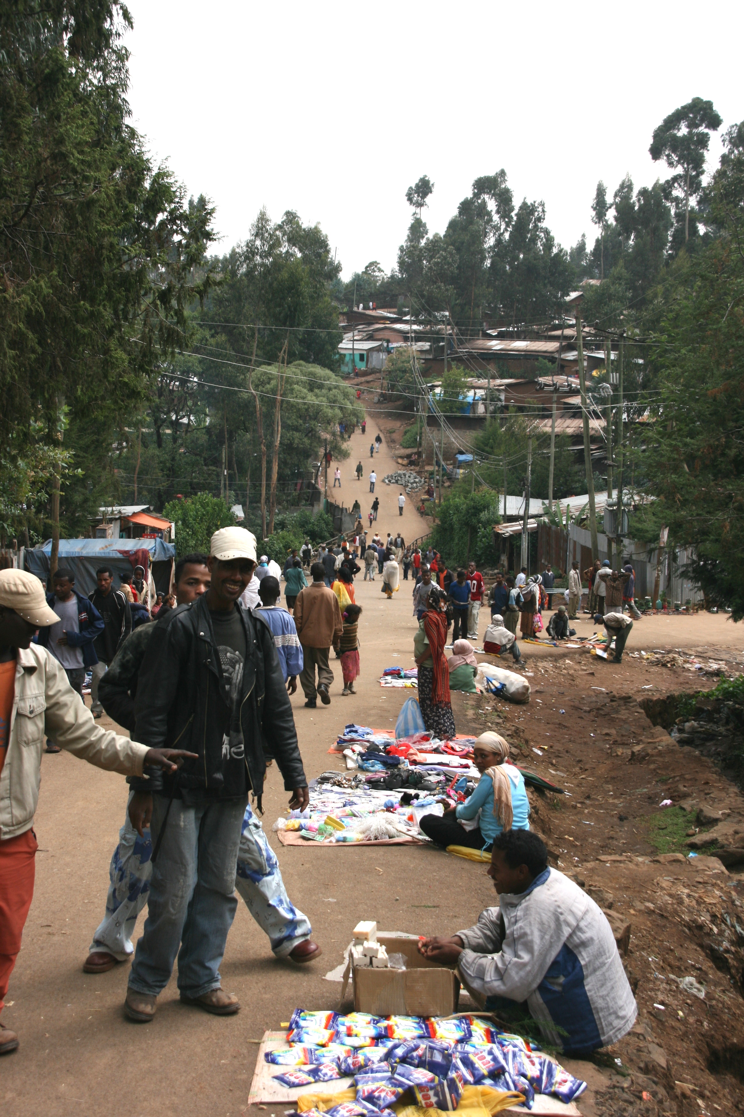It was quite an experience! Even as we entered the Merkato, we were surrounded by a group of young boys who started trying to distract us in various ways. Fortunately they soon lost interest, but a more worrying figure emerged in the form of a very drunk (or maybe highly drugged) man who decided to take a special interest in Andrew and me. He reached down and picked up a 4 metre long bamboo pole to swing around and hit us, but then he lost his balance as the bewildered locals looked on. However, he persisted in following us, shouting things that we couldn’t understand before reaching a wood cutter’s stall, at which point he picked up a heavy block of freshly chopped solid wood, measuring roughly 1 metre by 25 cm by 10 cm and started swinging it towards us. Needless to say, we moved on fairly quickly, and feeling we had probably got as good an understanding of Merkato as we were likely to get, we moved out onto a main road and away from the depths of Merkato.