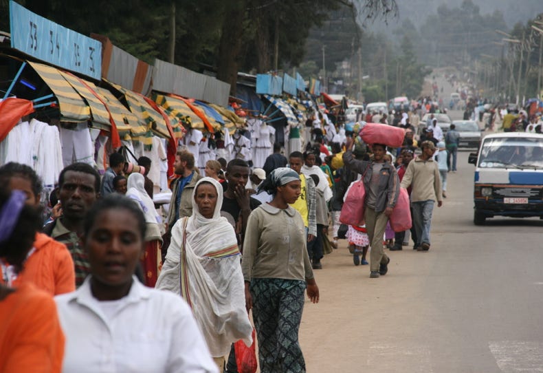 In the spirit of enjoying a restful Sunday, we took our time getting ready and went downstairs to breakfast at about 9:00 am. Even breakfast in a place like Addis Ababa can have its surprises - beyond the obvious ones of trying to work out what some of the food is. For example, I would estimate that about one-third of the other guests in the large dining room were American or European couples who seemed to have just collected an Ethiopian child or baby for adoption. In some cases, the happy couples seemed to have taken on two or (in one case) three children. I had heard that adopting African children was ‘fashionable’ in some circles, but the reality of the scale of these adoptions does not hit home until you see all the white couples getting to know ‘their’ new children in a hotel restaurant in Addis Ababa.