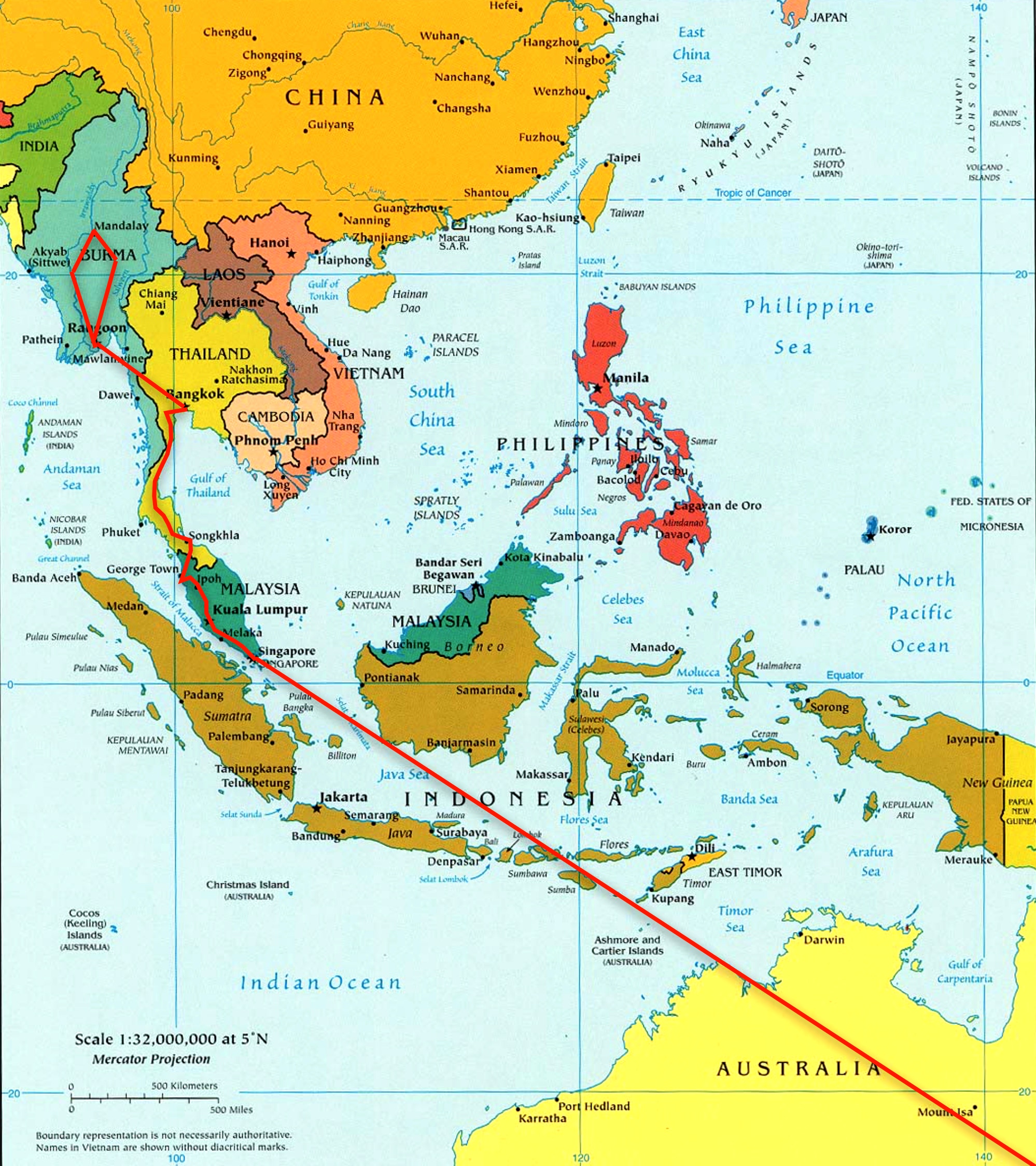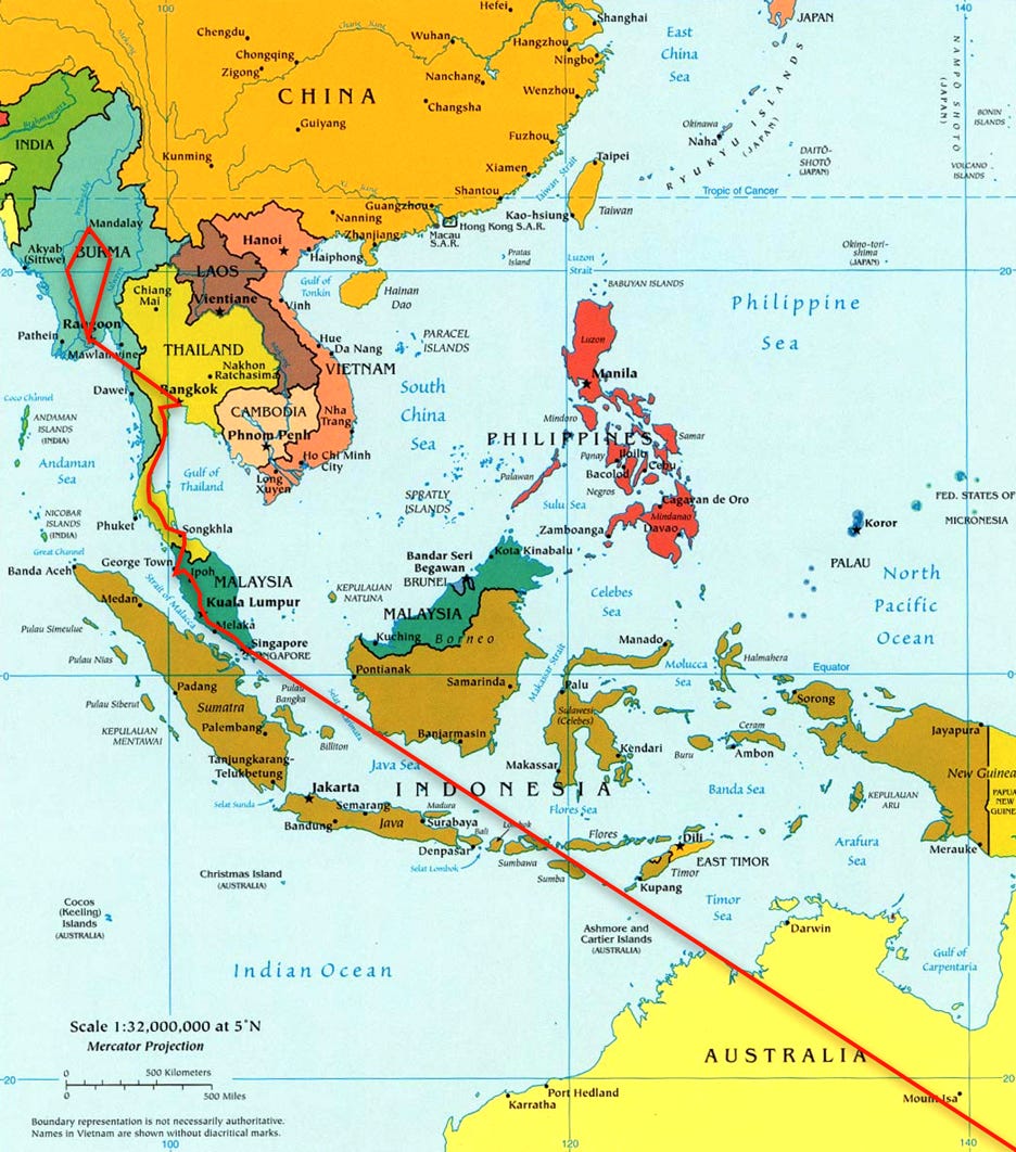 In April-May 1984, I led a study tour of school students to Myanmar, or Burma as it was known at the time.  We flew from Australia to Singapore, then travelled by train through Malaysia to Thailand before flying into Burma, and then undertaking through the country.