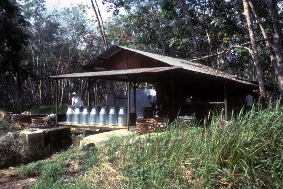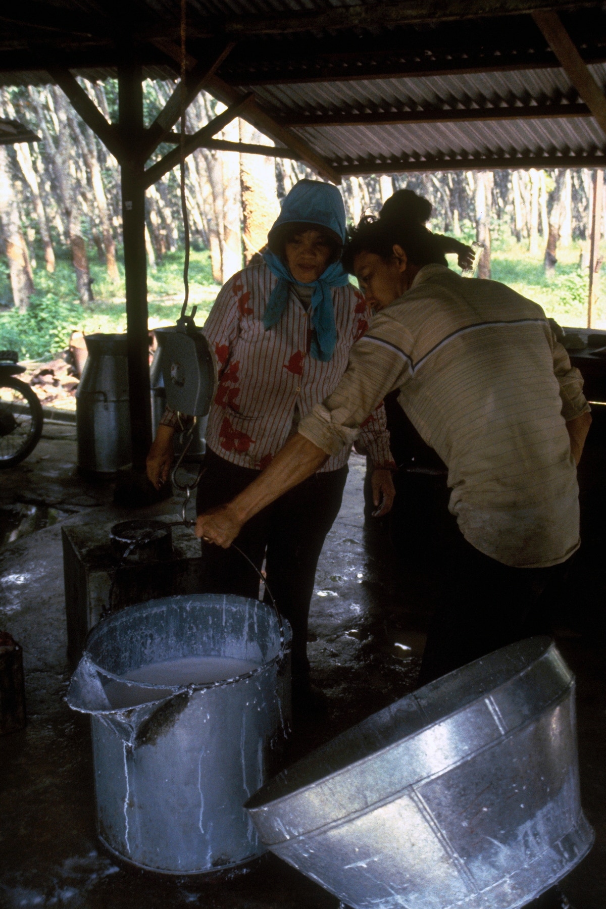 Our final day of the study tour was spent travelling to Johor Bahru in Malaysia. Hitherto, we had only seen Malaysia (apart from Kuala Lumpur) through the windows of our moving trains. Today’s tour took us by bus across Singapore Island, across the causeway into Malaysia, and through the city of Johor Bahru to the agricultural areas to the north. Being a Muslim state, it was business as usual in Johor Bahru (Friday being the Islamic rest day), and we inspected a rubber plantation and smallholder’s processing works, an oil palm plantation, and a pottery factory.