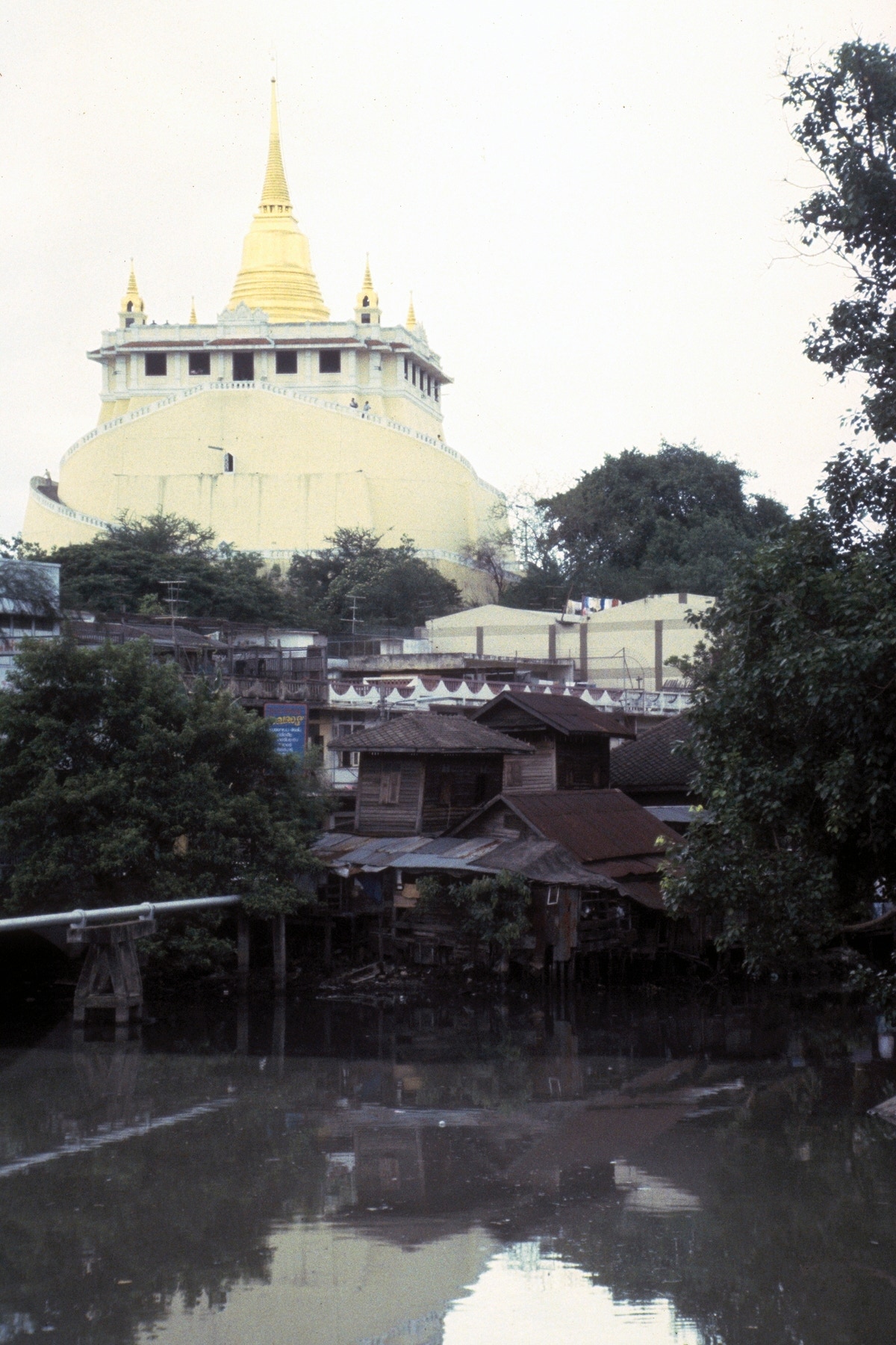 A short drive took us to the Golden Mount, an artificial hill which was built as a combined temple and fortress, but which now serves as one of the few vantage points from which to get an overall view of the very flat city of Bangkok. After lunch, another canal trip showed us the canal settlements to the immediate north of Bangkok, including a visit to a “typical” Thai house.