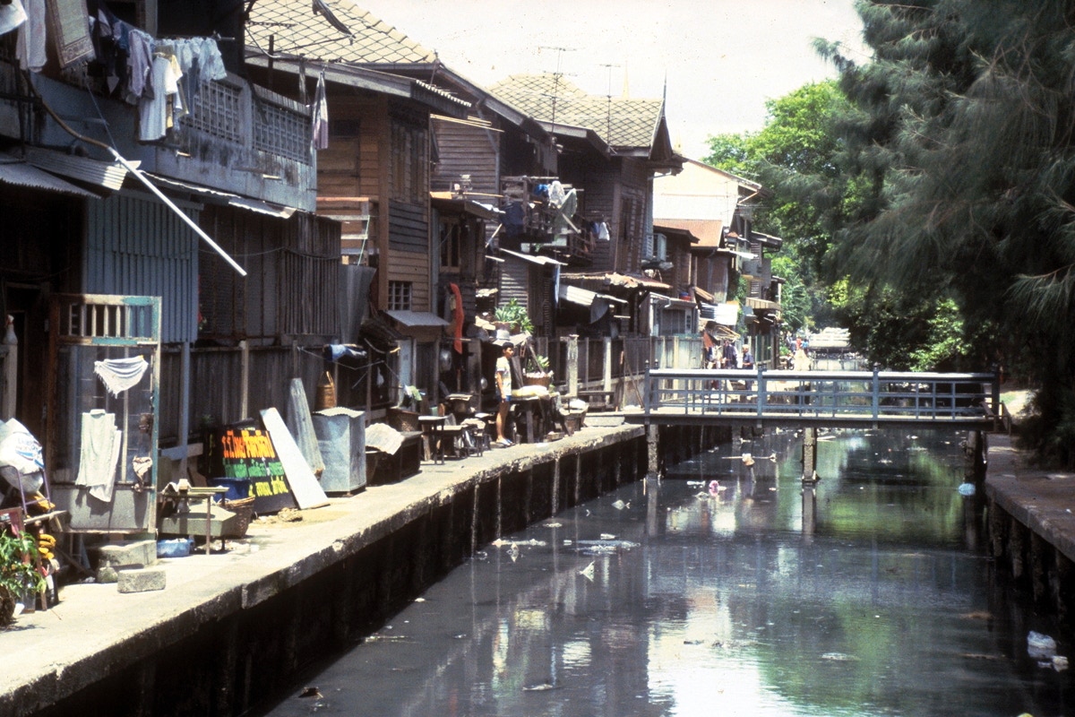 We spent today at a more leisurely pace exploring the poorer areas of Bangkok found along the city’s canals. In the morning, we travelled along the canals of Thonburi, seeing small timber houses built over the canals, experiencing the sights and smells of canal life. My students were amazed to see that despite the obvious filth of the water, only partly caused by its use for sewage disposal, local residents were using it for drinking, washing and bathing, and indeed one of Bangkok’s large ice works was using the canal water for its production. No further warnings were necessary from me as the study tour leader to avoid ice in drinks! This tour concluded at Wat Arun (Temple of Dawn), a 79 metre high Khmer-style ceramic covered temple beside the Chao Phraya, the largest river in central Thailand.