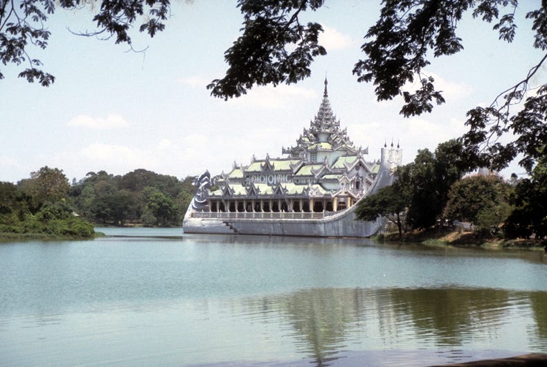 Having said that, the rooms were remarkably cheap ($25 per night for bed and breakfast), and they had working air conditioning. Perhaps because so few travellers come to Burma these days, the hotel was surprisingly well maintained, although the ancient open-walled elevator didn’t inspire confidence as it creaked and groaned its way up and down with a speed that seemed only marginally faster than a glacier.