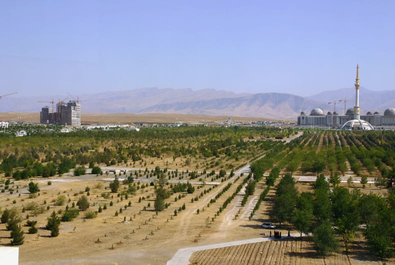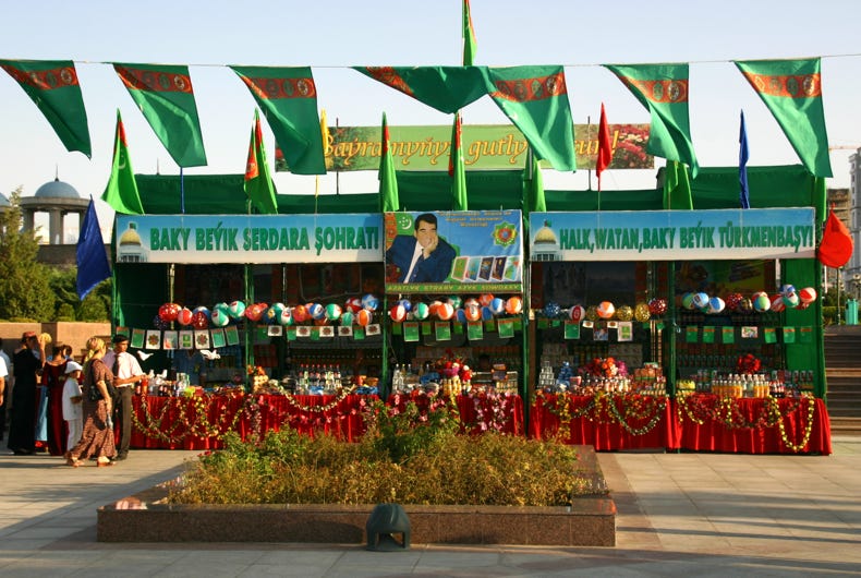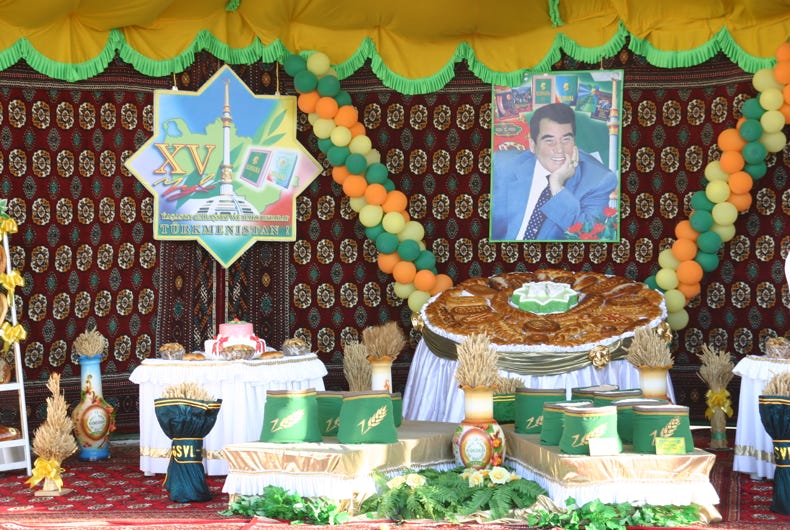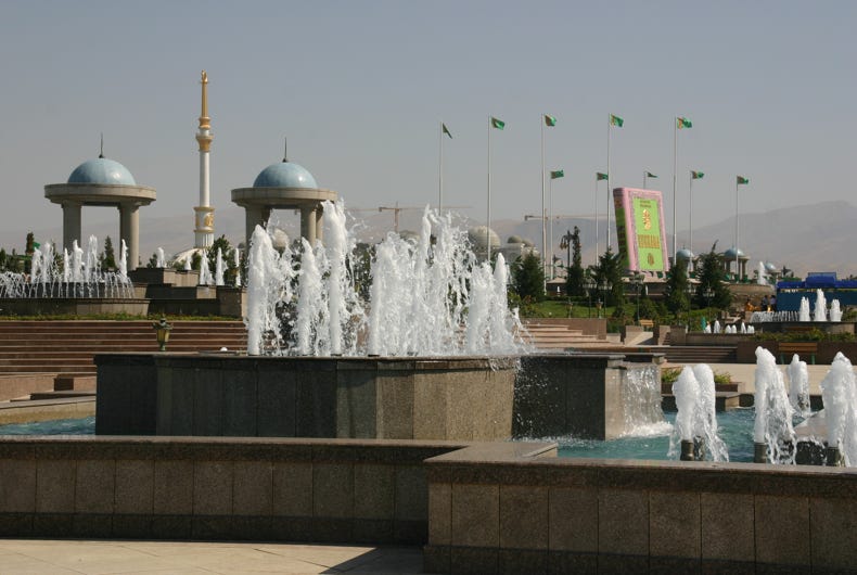 Having left Chandybil at 10 am, we reached Ashgabat at a little after 2pm. Following a quick stop at a market to change money and buy some drinks, we checked into our hotel at about 2:30 pm (the Hotel Aziya once again, and the same room [103] as our last time in Ashgabat – but then again, there weren't all that many rooms in the hotel!).