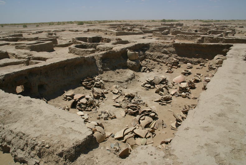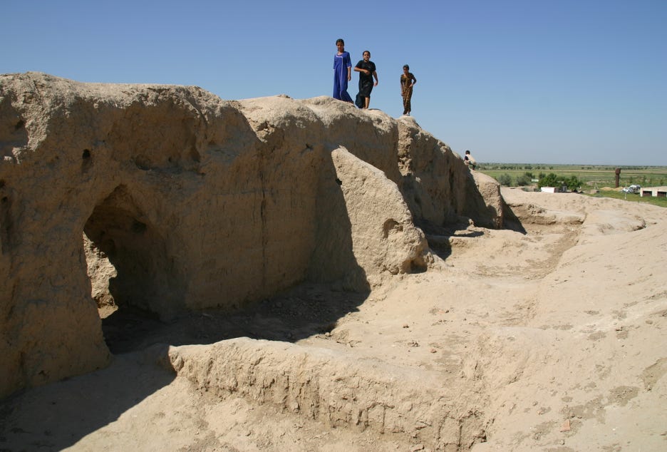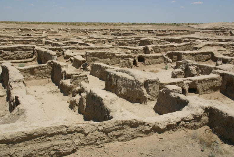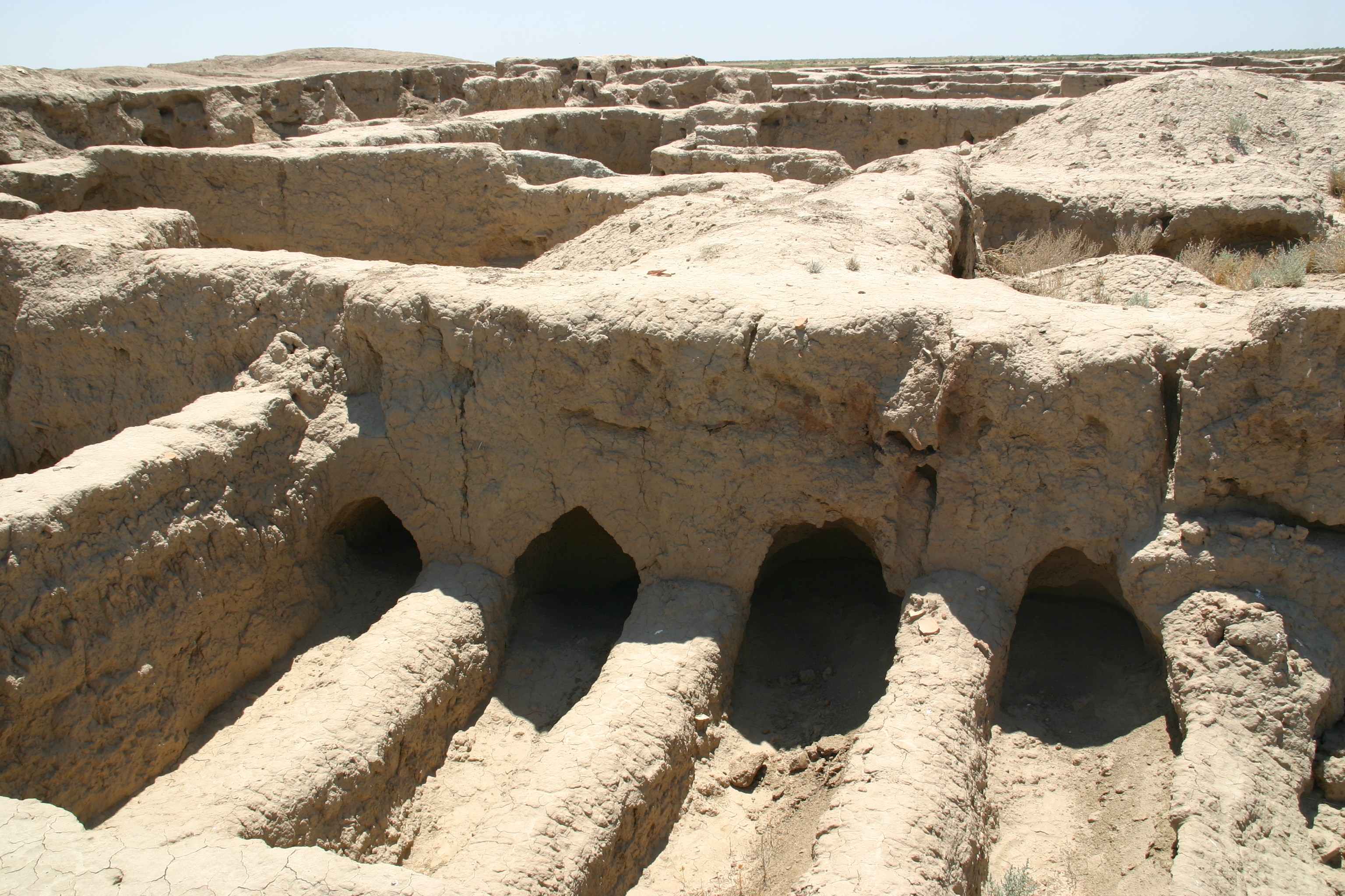 Gonur was a bit like Mary's grandfather city. Today, the River Murgab flows through Mary, but about 4500 years ago it flowed past Gonur. Sometime after the birth of Christ, the course of the river changed and Gonur was abandoned as people followed the water and established another great city on its banks, Merv, about 60 kilometres to the south-east. Merv reached its peak as a Silk Road city in the 11th and 12 centuries, but after it was destroyed by the Mongols under Genghis Khan in 1221, the river changed course again, and Mary was established about 30 kilometres south of Merv. It was interesting to see how the settlement pattern had changed over time with the changing location of the water – understandable in a hot desert environment!