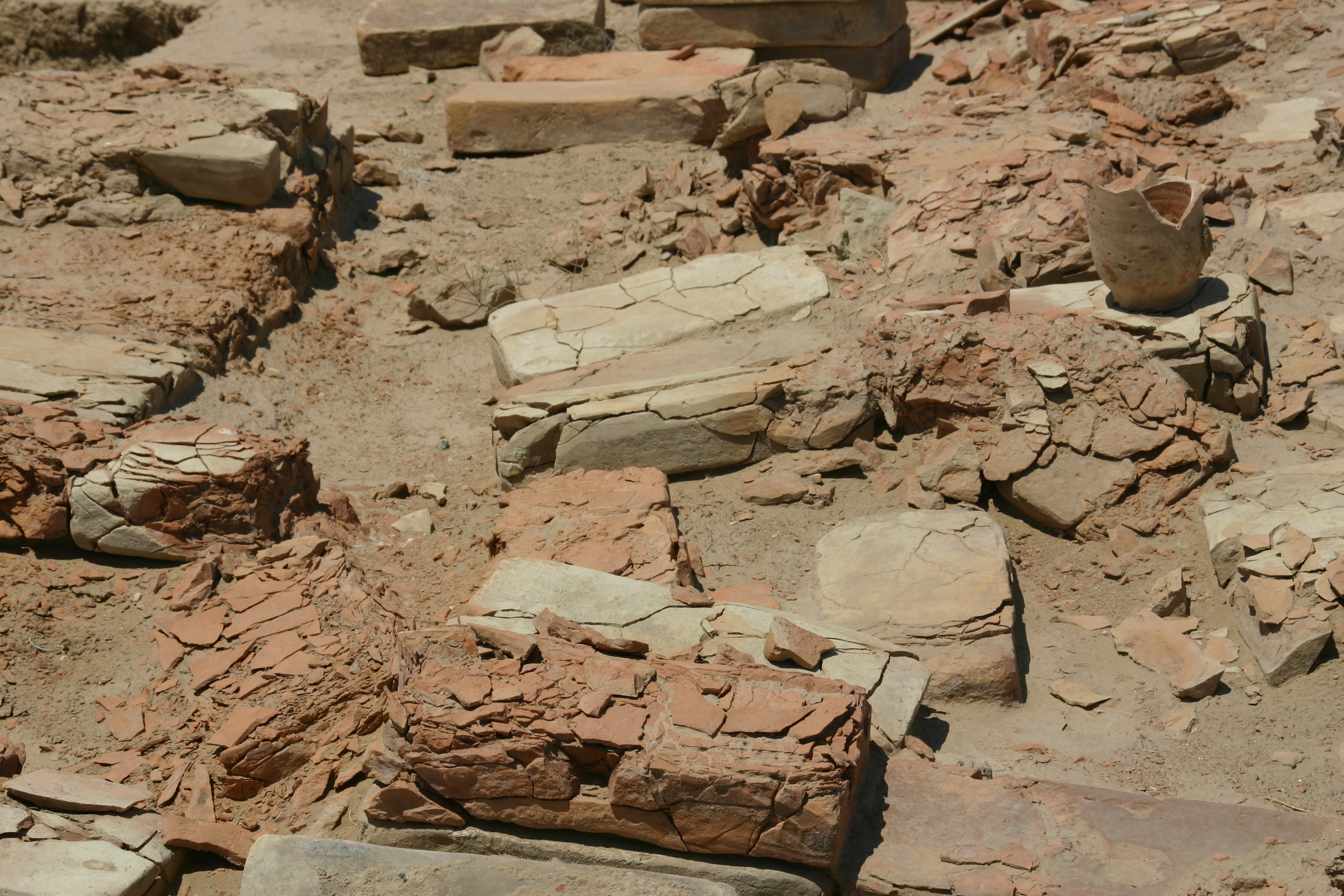 The walk around Gonur was hot but fascinating as we tried to guess (or work out) what various rooms may have been used for, based upon the evidence of their shape, size and situation. The area was so rich in remains that we spent most of our time walking over ancient ceramic fragments as though they were common pebbles; they were just as numerous!