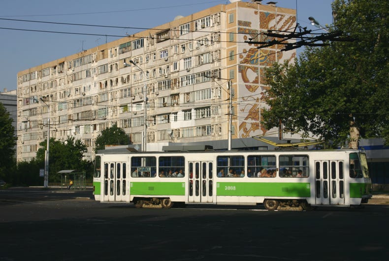 Our task today was a fairly simple one – to drive 300 kilometres from Samarkand to Tashkent, ready to catch a flight the following morning to Tehran. The drive was completed in just over four hours, leaving at 9 am and arriving at 1:10 pm, with just two brief stops for the driver to smoke a cigarette.